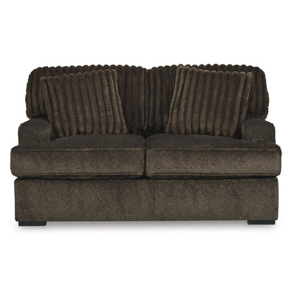 If you’re looking for a blend of extraordinary comfort and contemporary style, this extra-roomy loveseat stacks up beautifully. It’s a modern yet ultra-soft look—made all the more appealing by plush textured and on-trend corduroy cushions that feel as great as they look. The rich chocolate color is simply smart and practical. And pretty sweet.