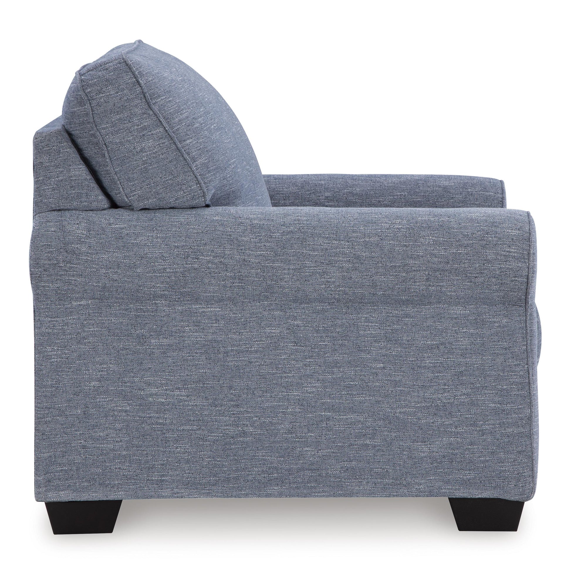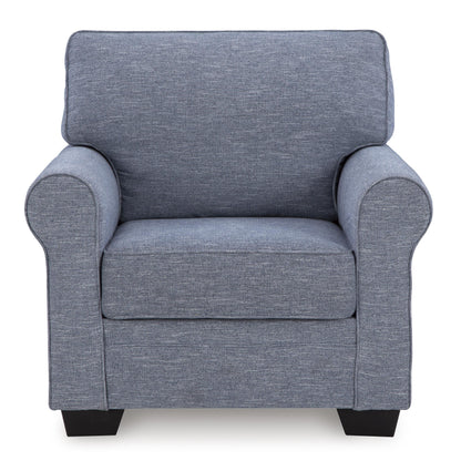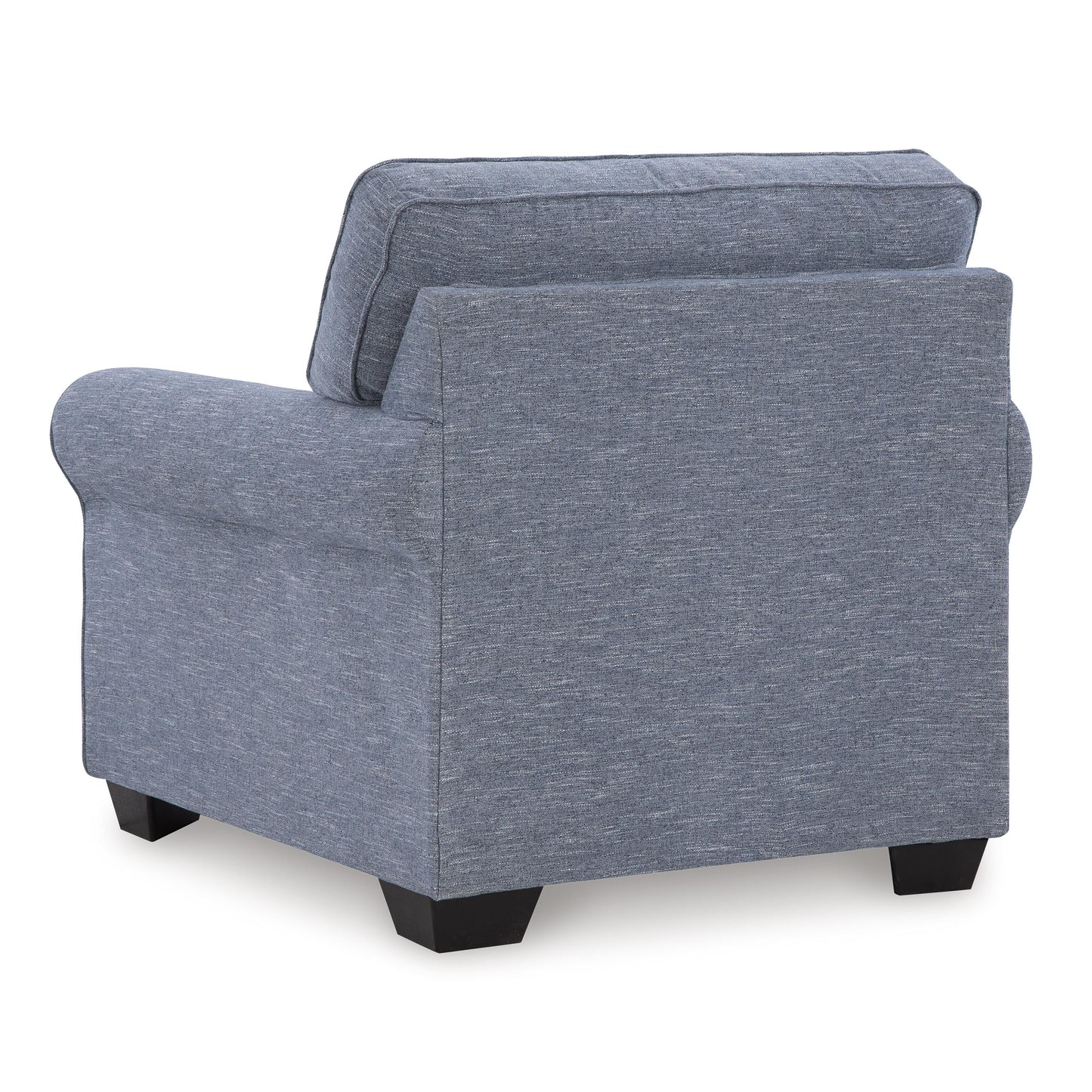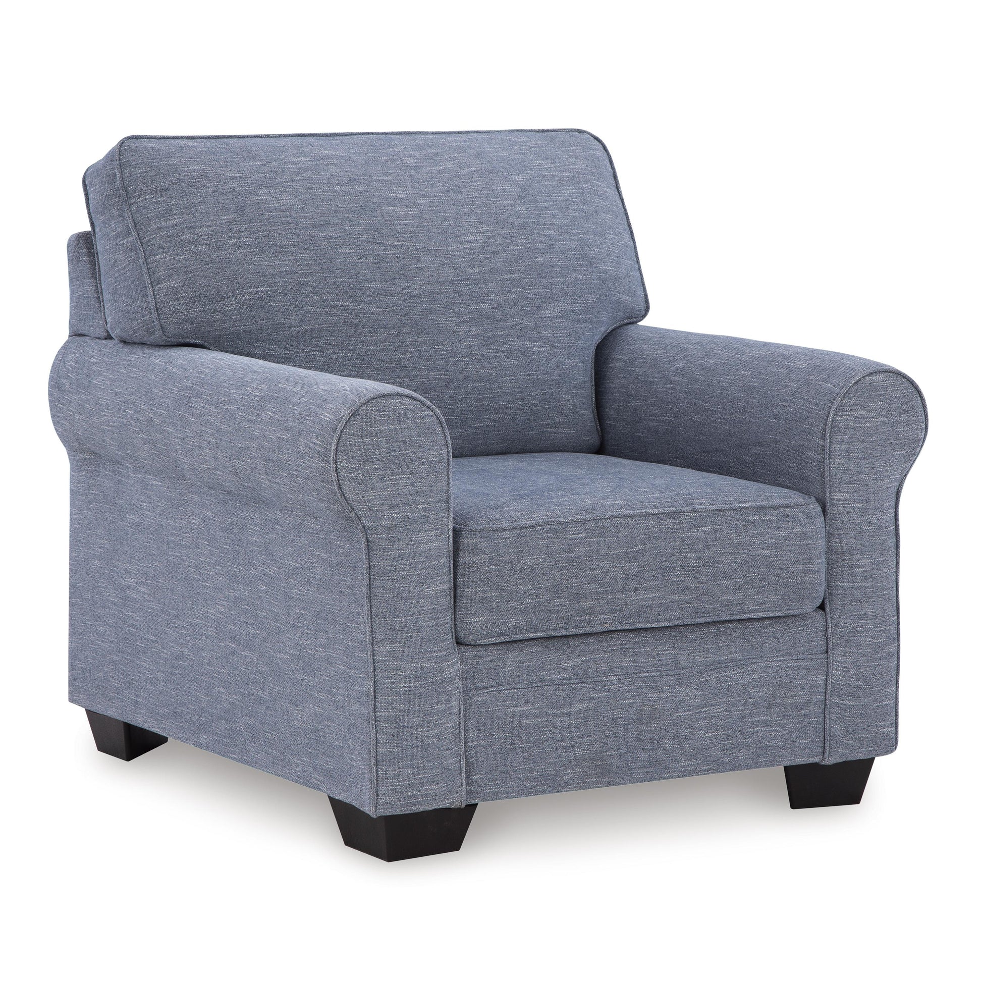 This chair is defined by comfort, convenience and classic style. Soft to the touch and stain-resistant, the Next-Gen Nuvella™ fabric is easy to maintain. And you'll love the universal appeal of its denim-inspired hue. With roll arms adding a dash of traditional flair, the chair is a simply chic approach to everyday relaxation.