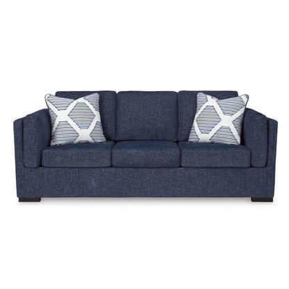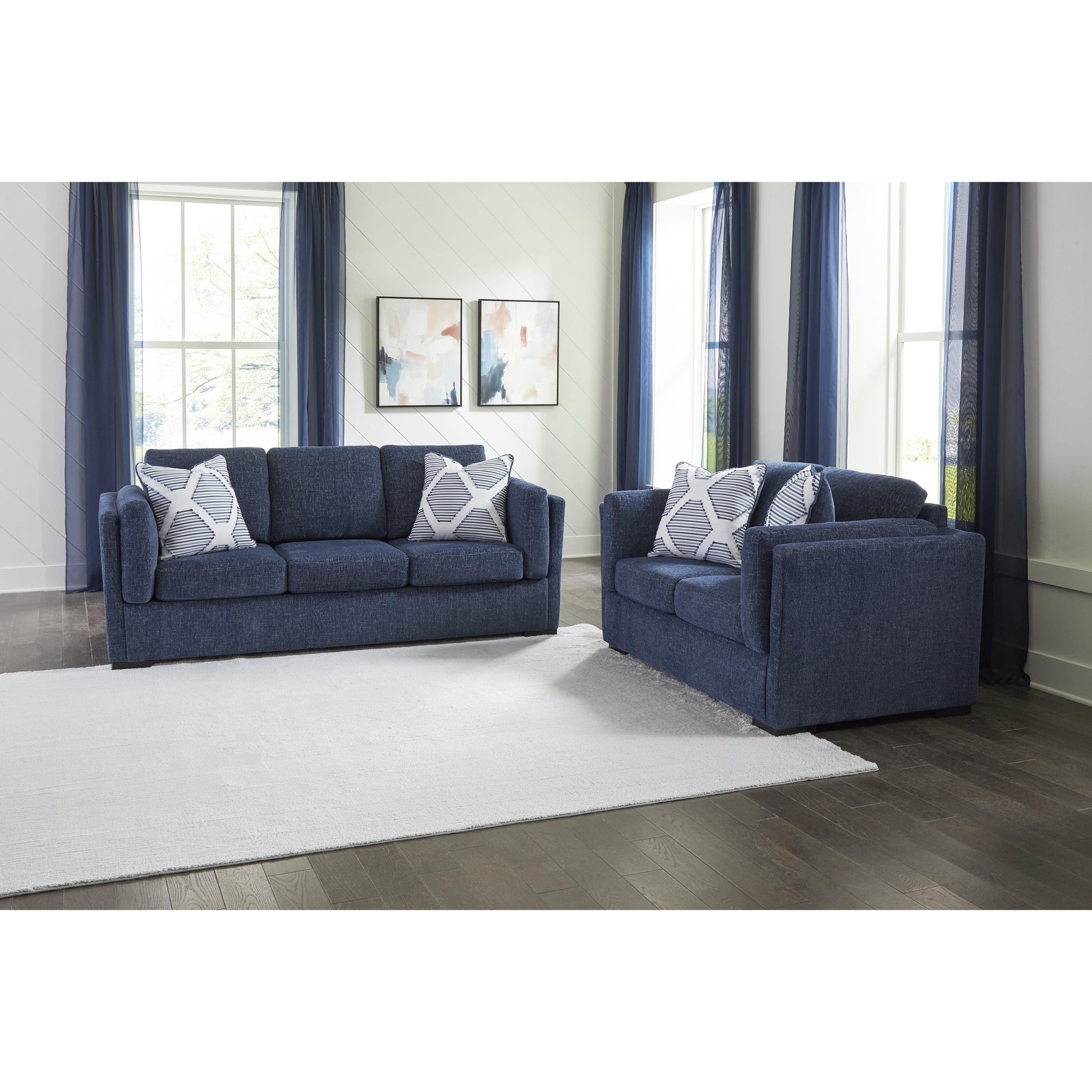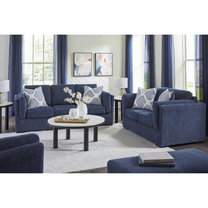 Casual contemporary style, meet carefree lounging. With this sofa, you don’t need to sweat the small stuff. Thanks to its a fresh navy hue, you can stay right on trend when you relax solo or with guests. Arm bolster pillows keep you extra comfy. Time for a touch-up? Machine-washable Next-Gen Nuvella™ covers make upkeep a breeze.