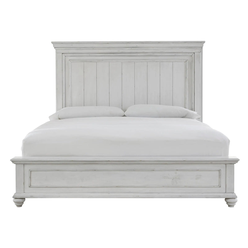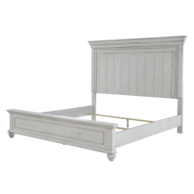 Give your retreat vintage charm with this king panel bed. In a beautifully distressed whitewash finish, you'll love the headboard's grand style featuring a picture framed panel. Generously scaled moulding from top to bottom, along with bun feet give this bed character—evoking the feel of a quaint cottage escape.