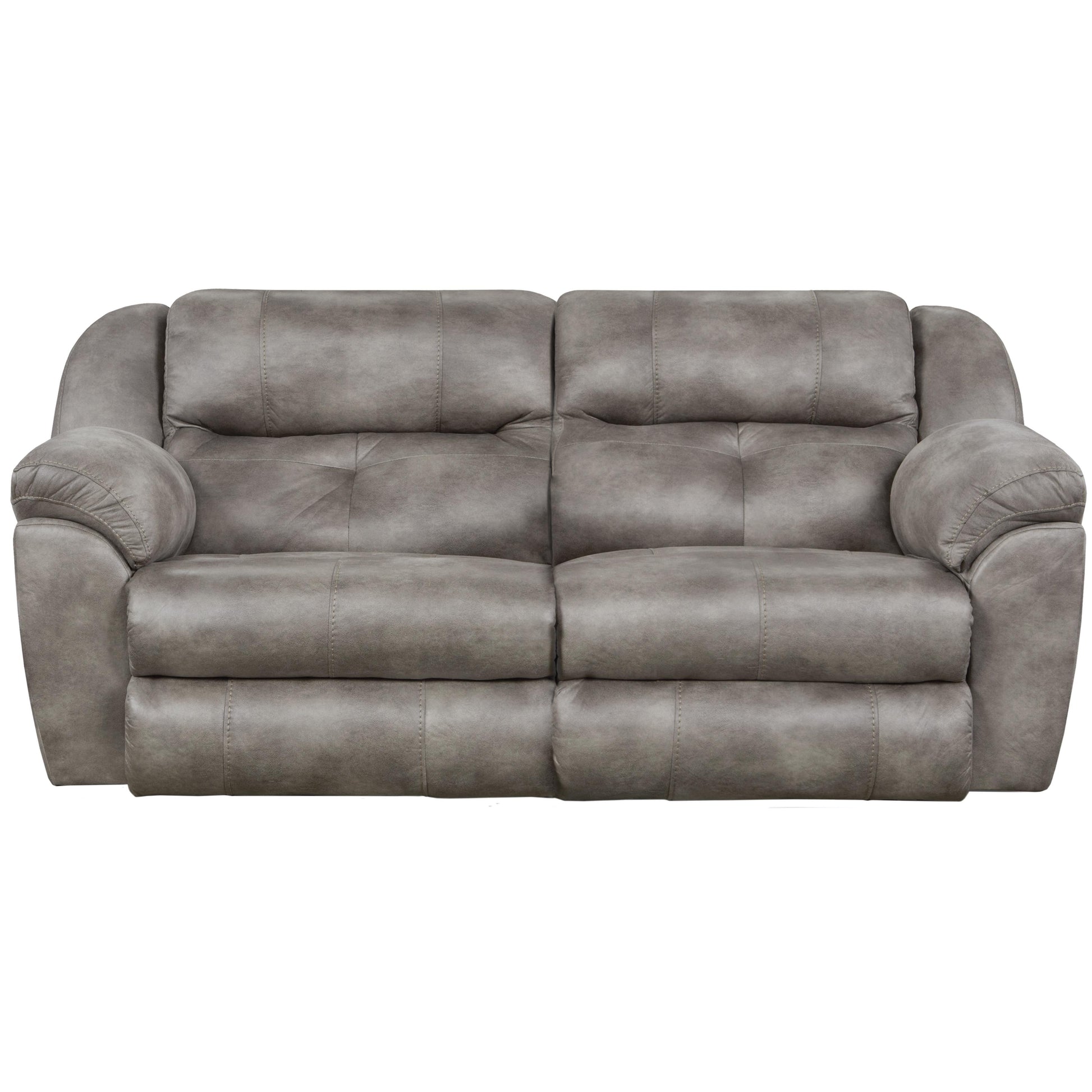 This Ferrington Power Reclining living room set by Catnapper Furniture offers a contemporary style, extra-wide two-over-two cushion design in padded polyester fabric. This set also features a lay-flat recline feature, power headrest, and comfort coil seating with comfort-gel assuring you maximum relaxation. It is adorned with beautiful decorative luggage stitching. The set is composed of a power reclining sofa and power reclining loveseat.