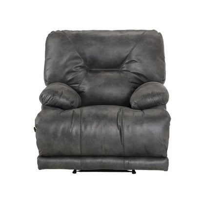 The Voyager recliner features ultimate comfort and function. The fabric is a printed polyester padded faux leather with a sewn and tufted back treatment with decorative stitching. Comfor-gel foam and comfort coil seating add to the comfort.