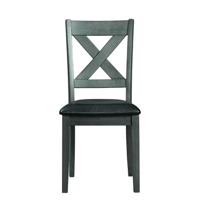 This Alex 7-piece dining set features chairs with upholstered seats in black faux leather and a grey finish. This dinette includes a dining table and 6 side chairs.