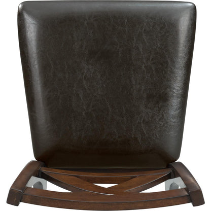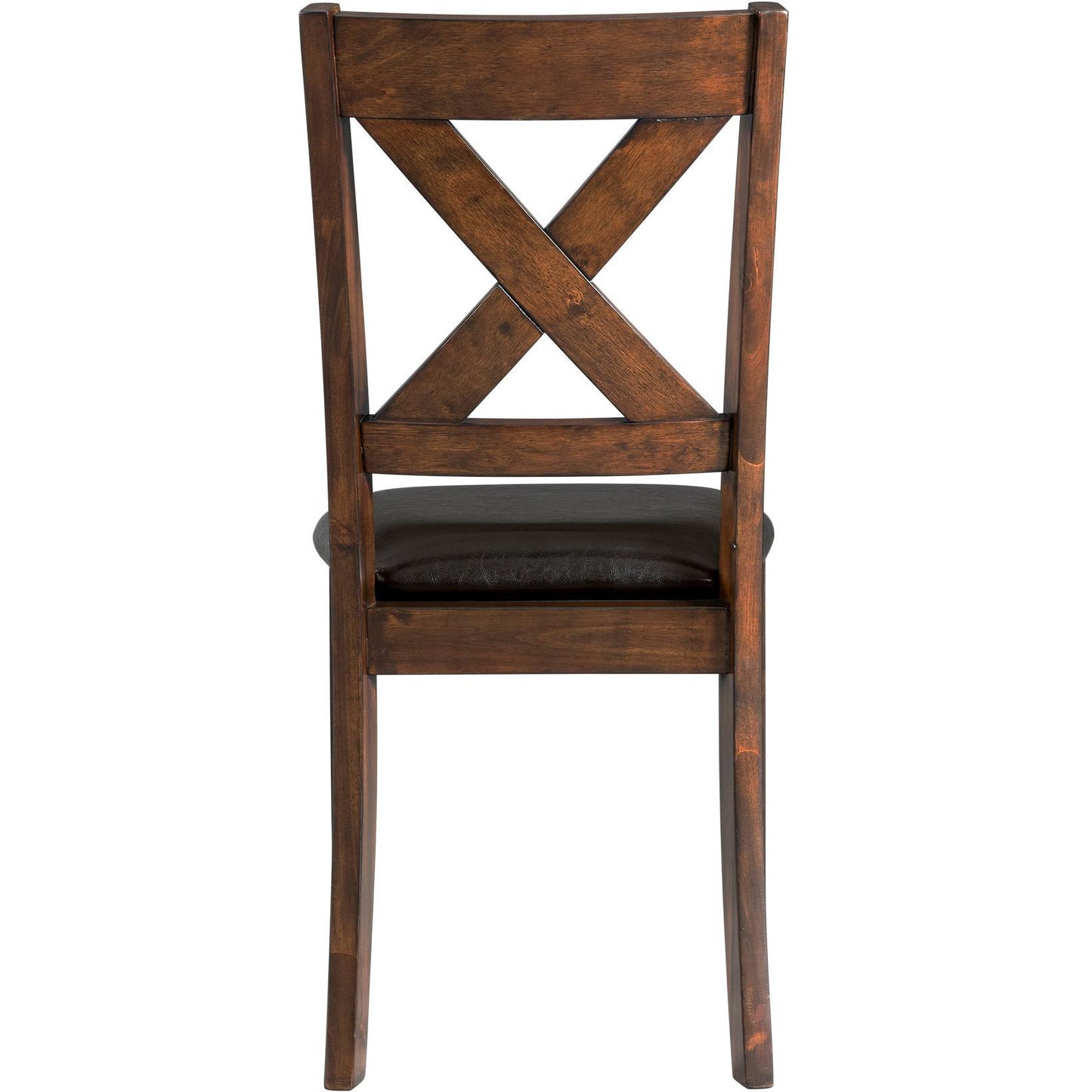 Alex Standard Height Side Chair in Cherry is perfect for your dining room. The chair features an X-back design and the seat is upholstered in a faux leather fabric; adding extra flair. The foam cushion seat will keep you comfortable during long dinners. It is finished in a warm, cherry and pairs perfectly with the faux leather upholstery.