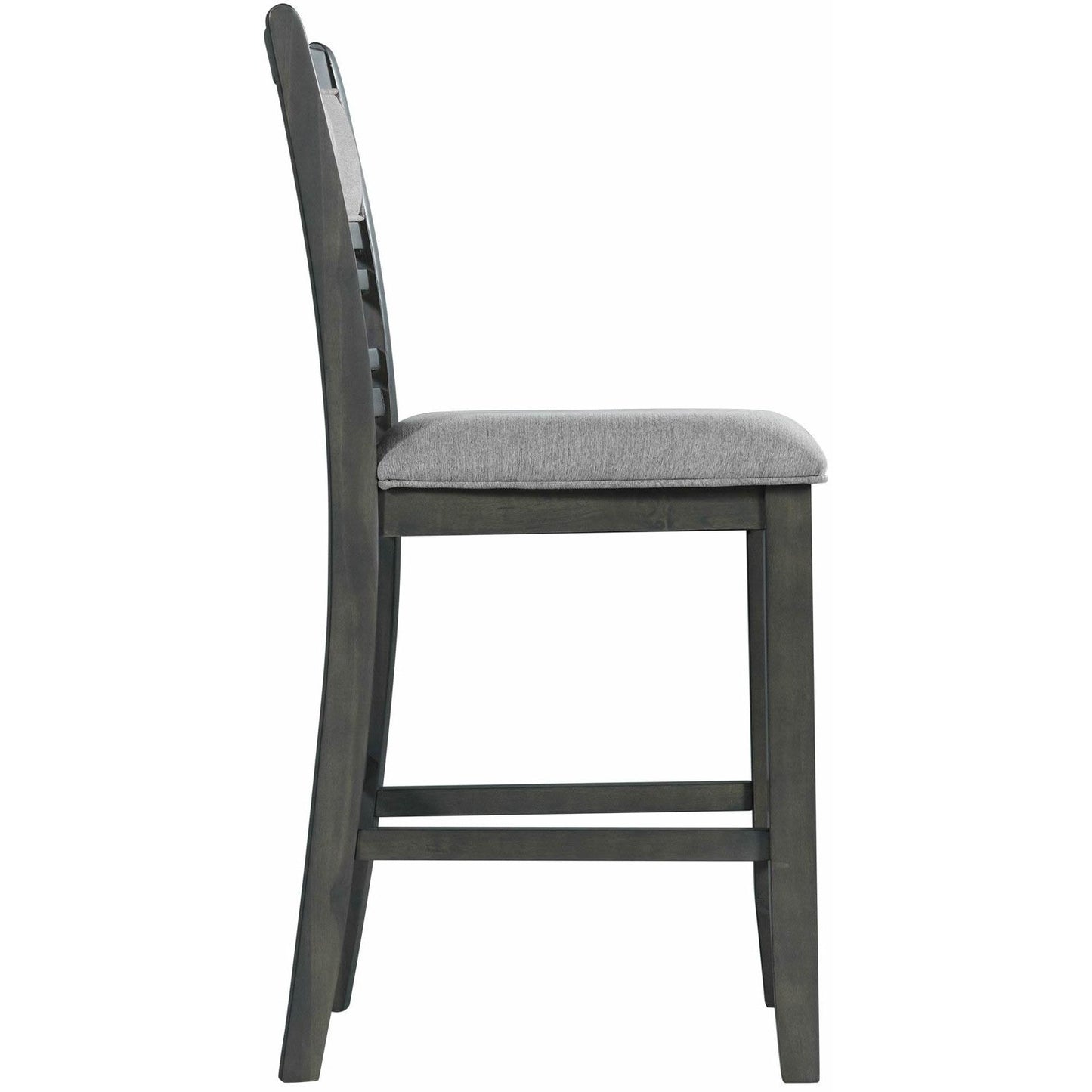 The Amherst Counter Height Side Chair Set in Gray will look fantastic in your living room! This set includes two side chairs that will look great around your dining table. This dynamic duo features an upholstered seat and back that will give you ultimate comfort while you enjoy your meals. The back of the chair also features a cool, link design that instantly adds flair to this already stunning set. The gray finish pairs beautifully with the gray fabric and a combination you'll enjoy year after year. Add this chair set to your home today for a look you'll enjoy day after day!