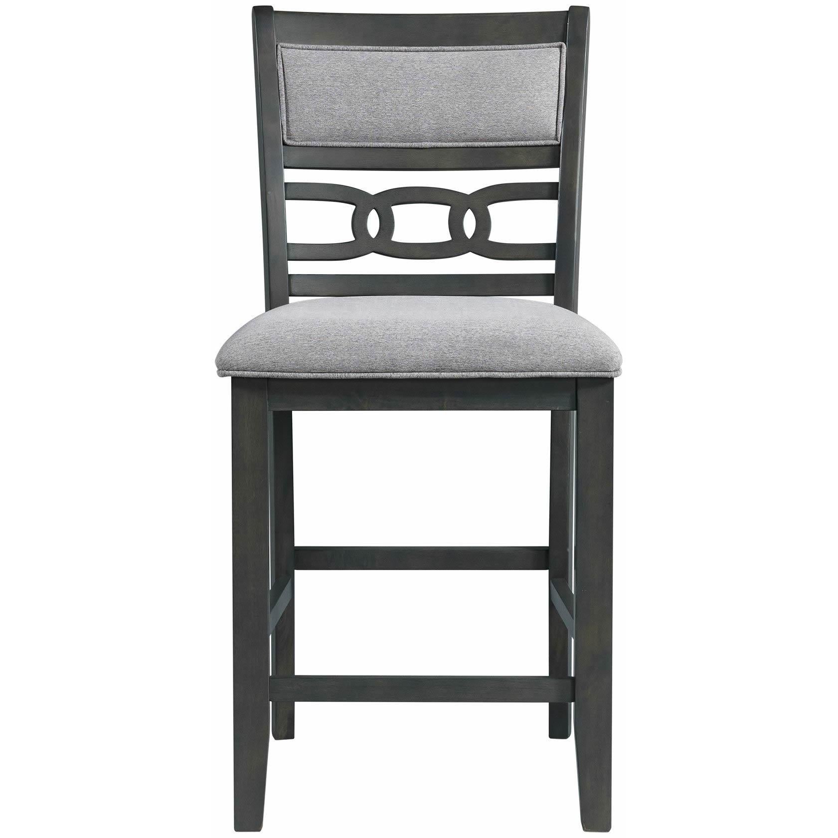 The Amherst Counter Height Side Chair Set in Gray will look fantastic in your living room! This set includes two side chairs that will look great around your dining table. This dynamic duo features an upholstered seat and back that will give you ultimate comfort while you enjoy your meals. The back of the chair also features a cool, link design that instantly adds flair to this already stunning set. The gray finish pairs beautifully with the gray fabric and a combination you'll enjoy year after year. Add this chair set to your home today for a look you'll enjoy day after day!