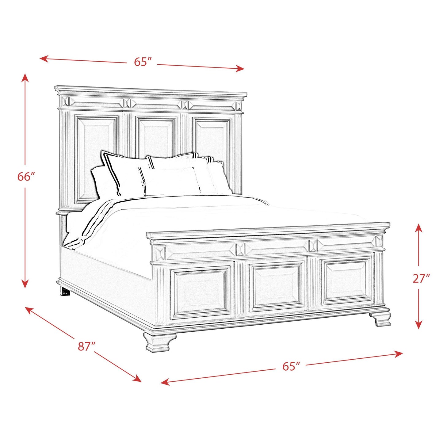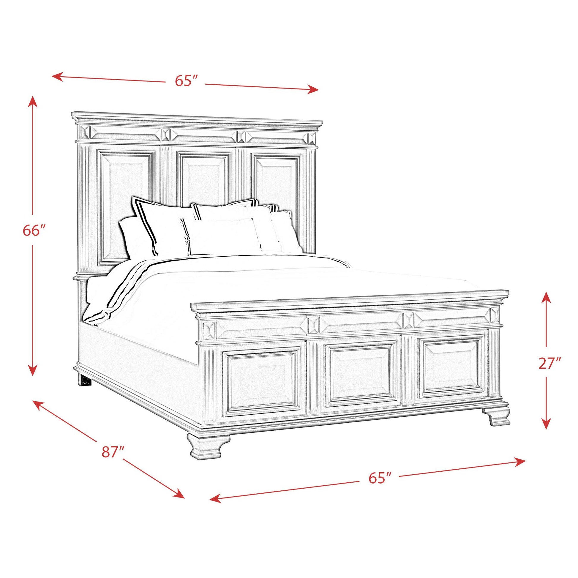 • Tri-panel headboard and footboard