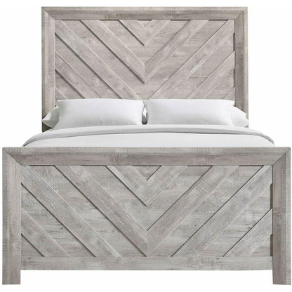 The Ellen Full Panel Bed in White is crafted of solid wood, MDF, and plywood in a white finish. Clean and modern lines throughout. Exposed wood grain detailing and fashioned with rustic-inspired distressing for a character. The Ellen Full Panel Bed has a natural-looking aesthetic, perfect for any farmhouse or transitional-style bedroom.