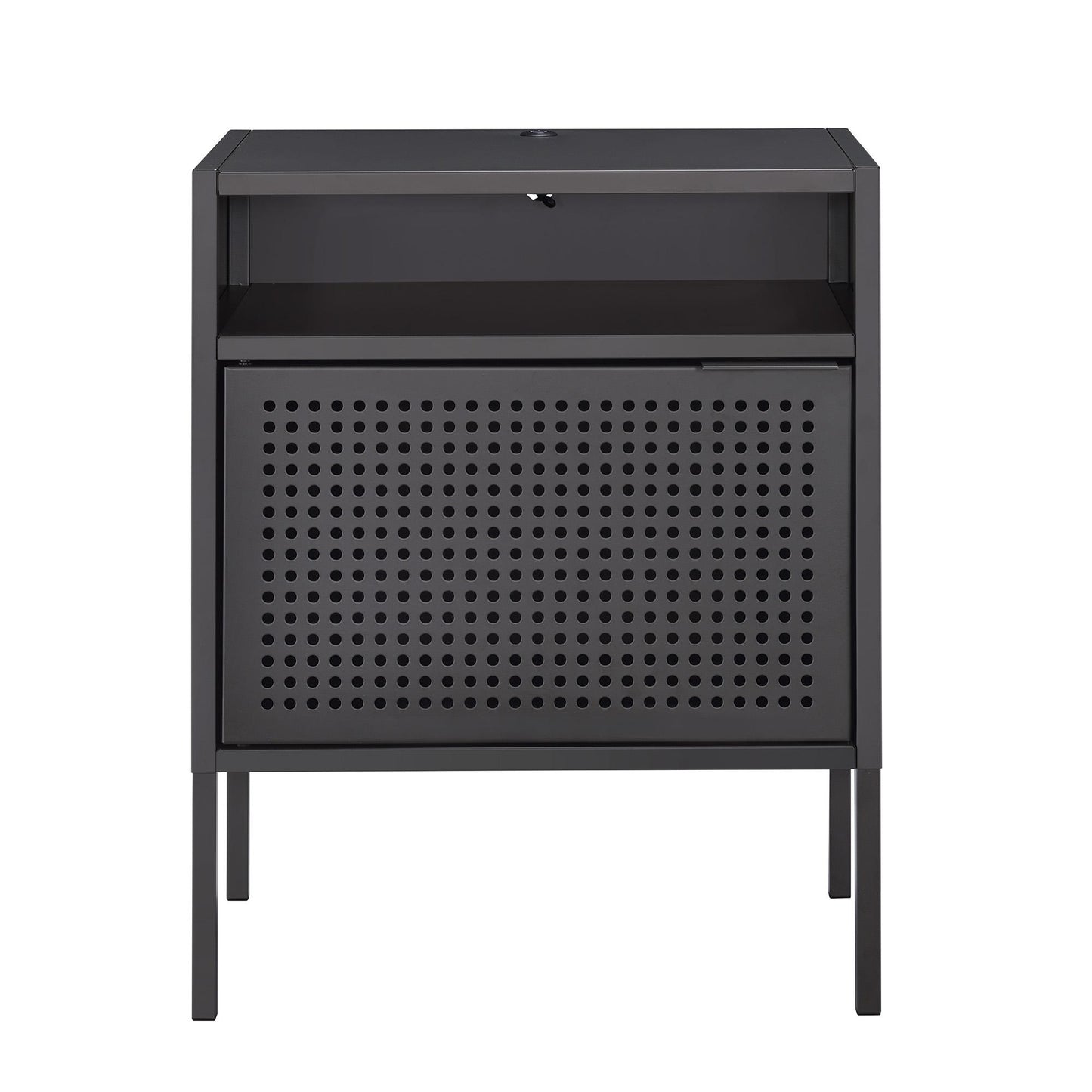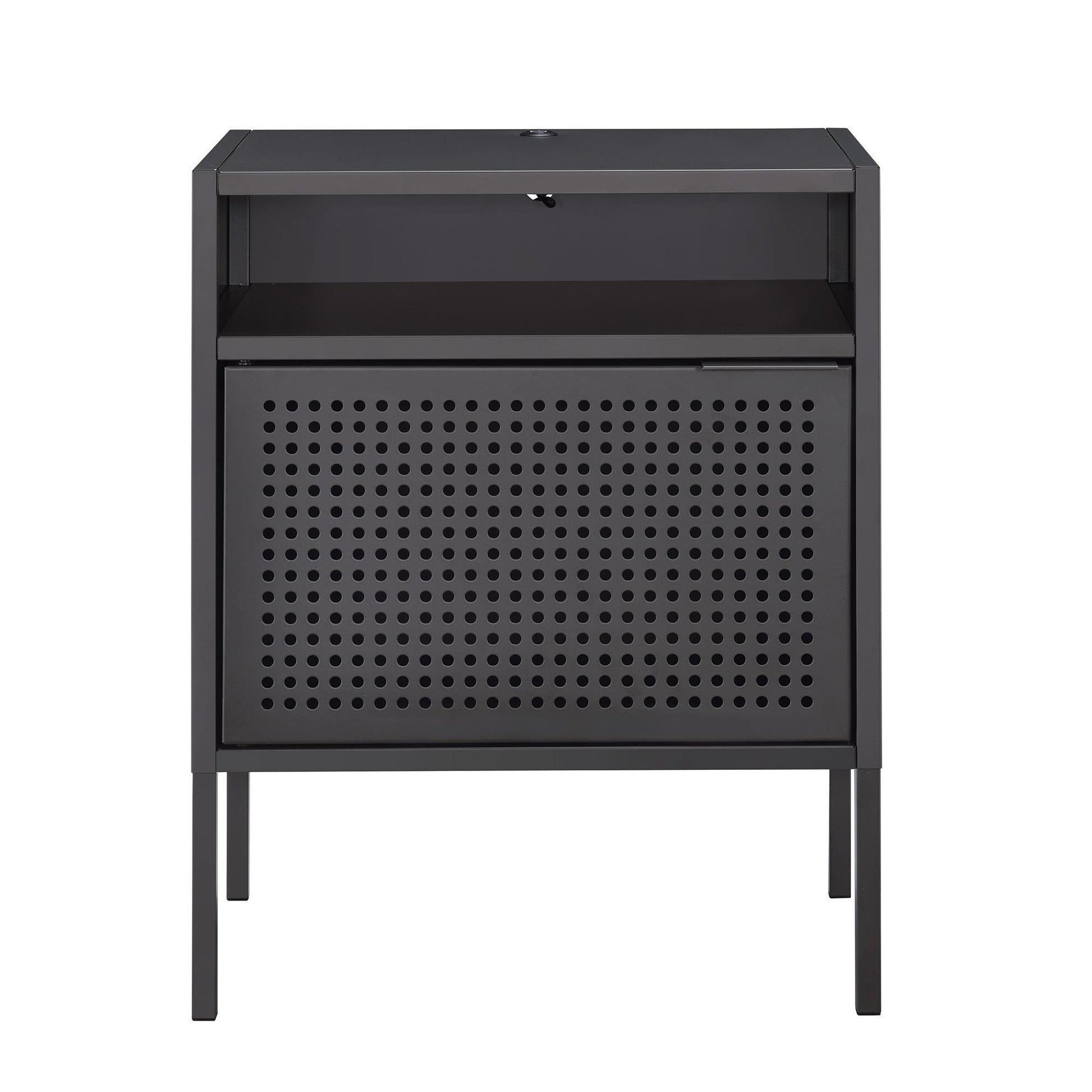 The Ember nightstand is a quick and simple way to update any room! This table can be used as a nightstand or as an accent table in your living room. You can even keep your devices charged while you watch your favorite show or while you sleep. The table is made of metal and features an open shelf space as well as a cabinet to store away your belongings.