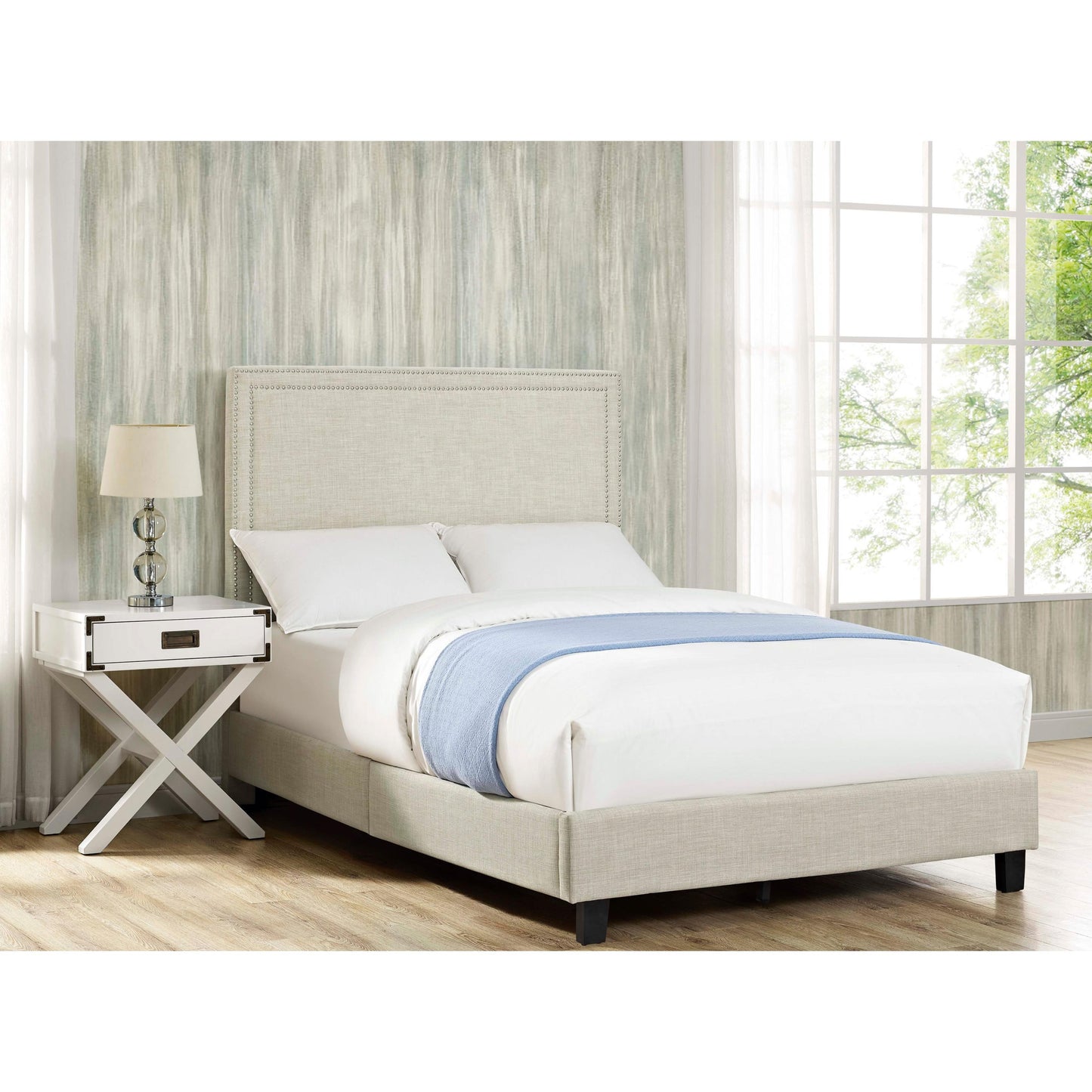 This Erica full bed features a headboard with nailhead trim and natural upholstery.