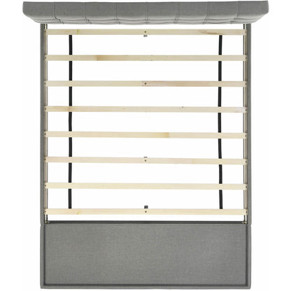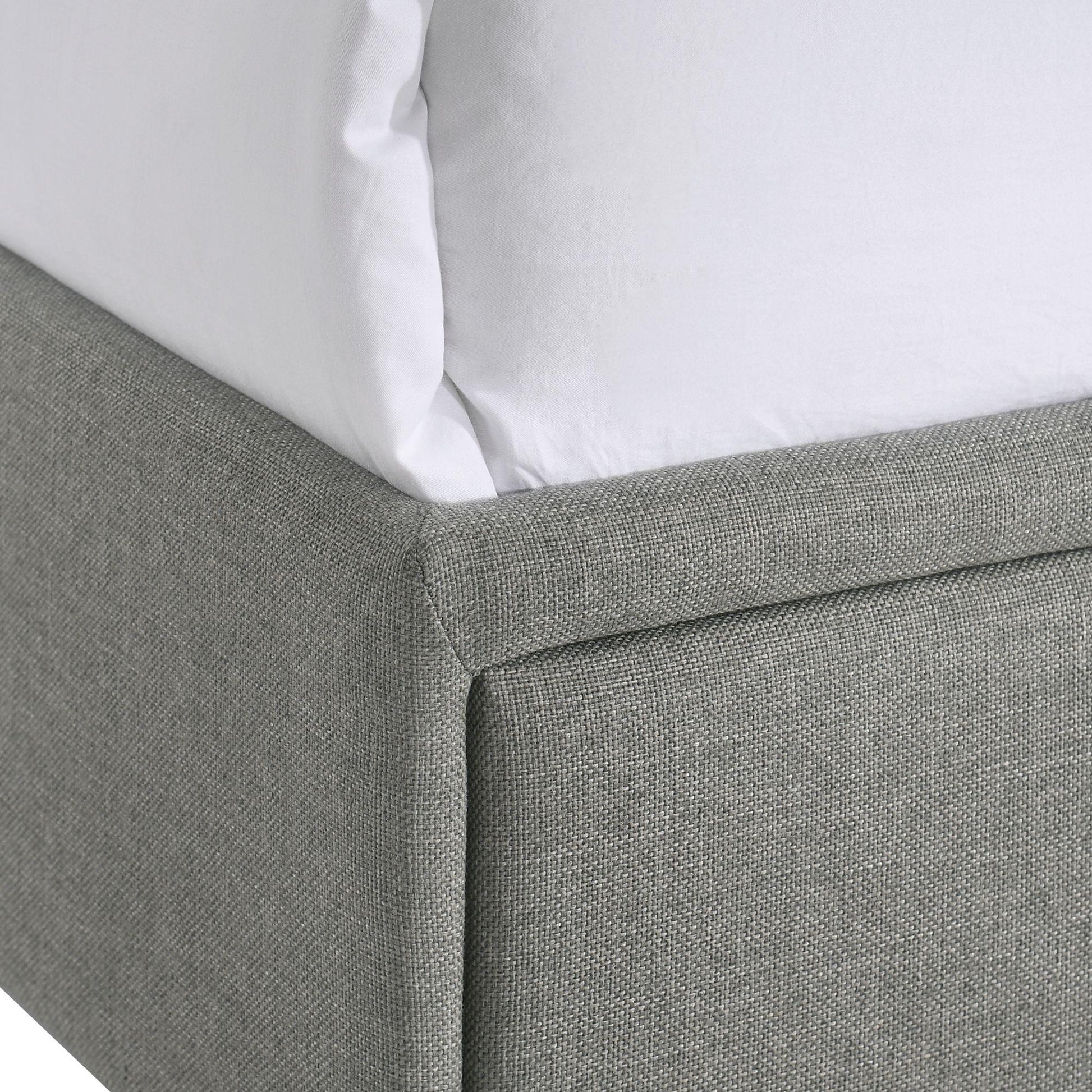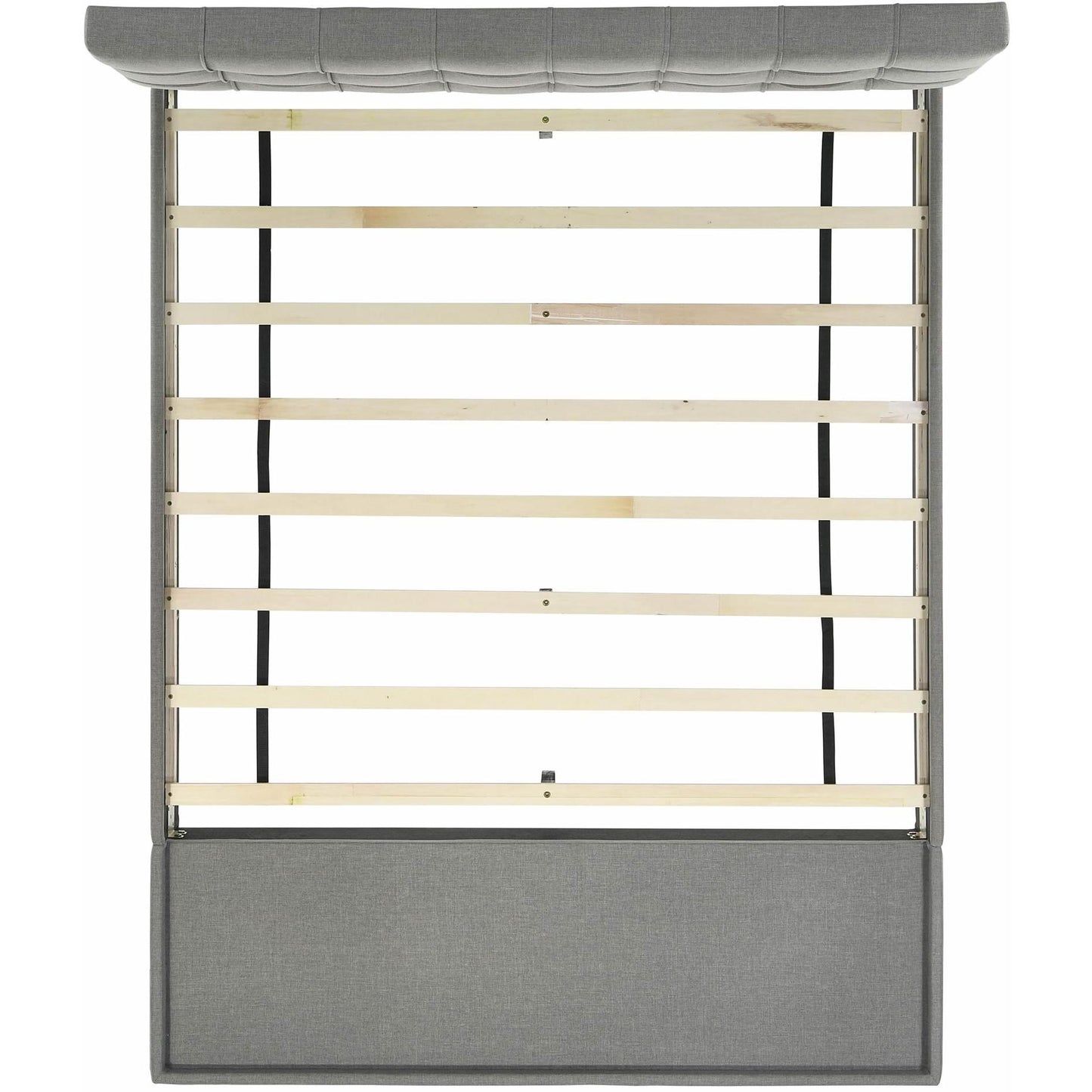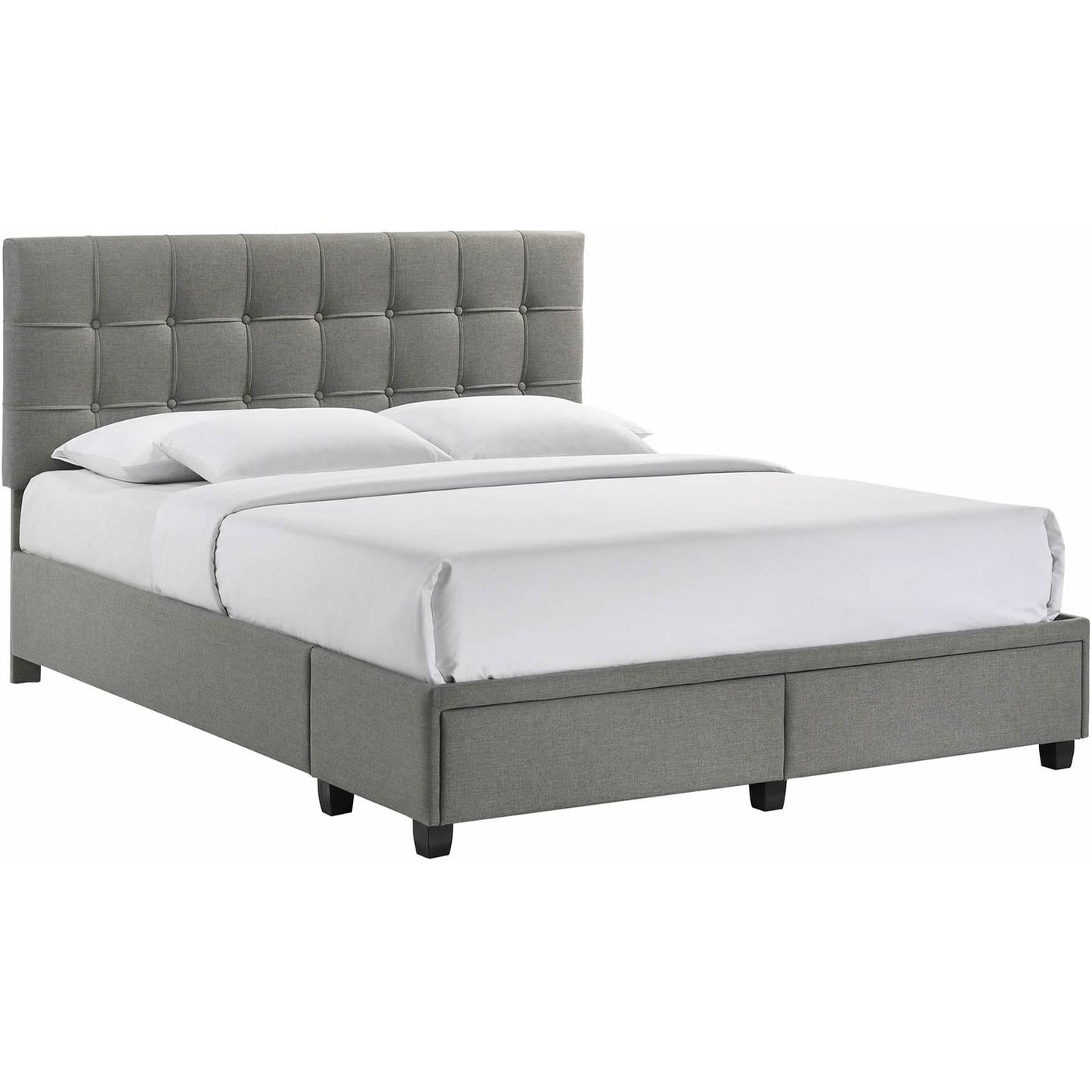 The Hacienda Queen Platform Storage Bed brings style and functionality to your room! Crafted from sturdy plywood and upholstered all over for a plush and modern aesthetic. The headboard is upholstered in soft, polyester with decorative tufting perfect for a modern space. Includes eight slats and four support legs underneath your mattress to provide lasting comfort for up to 800 pounds. Two drawers are built into the footboard to provide convenient storage for your clothing or favorite blankets. What makes this bed even better is that it ships in one convenient and easy-to-handle box. Upgrade your space with the Picket House Furnishings Pasadena Queen Storage Bed.