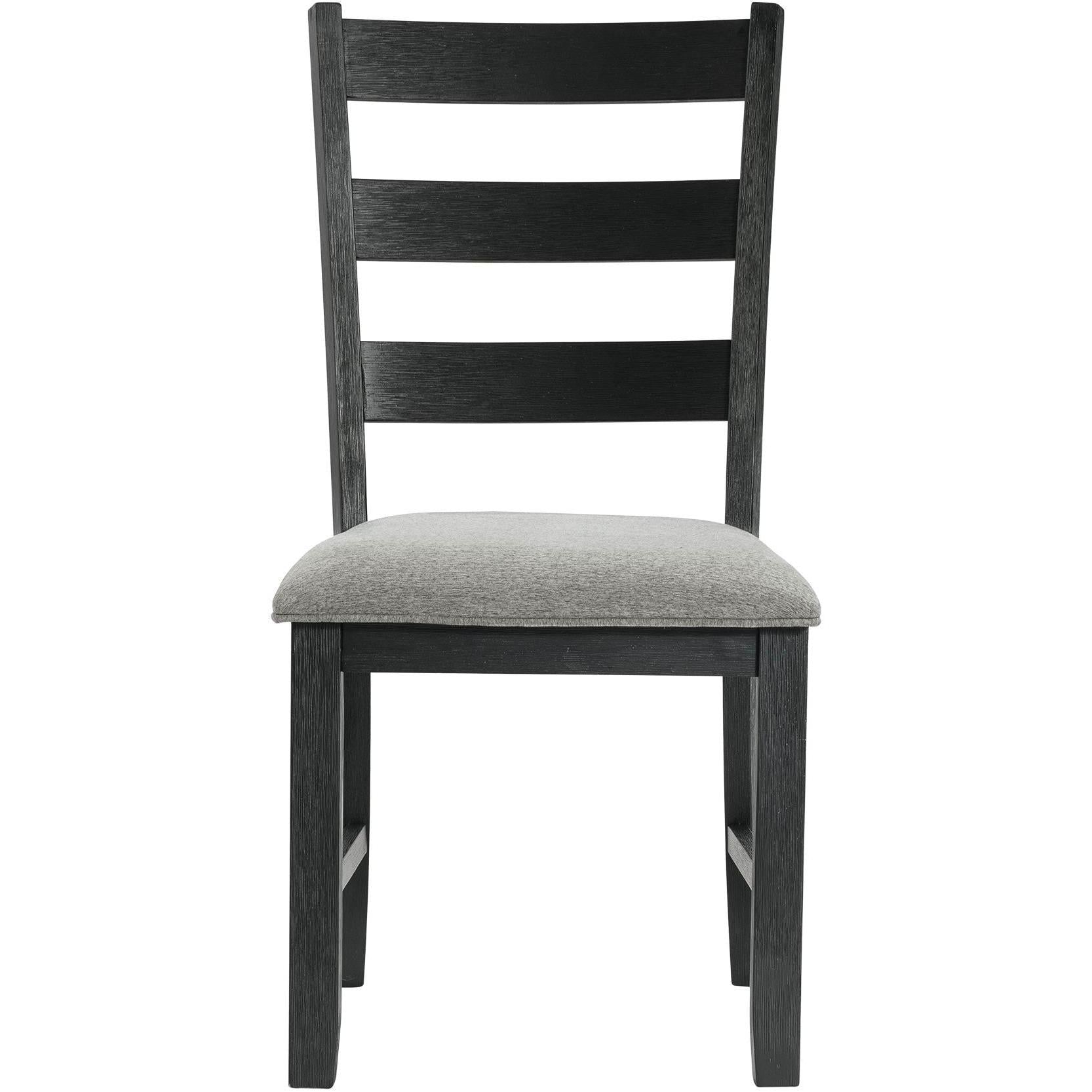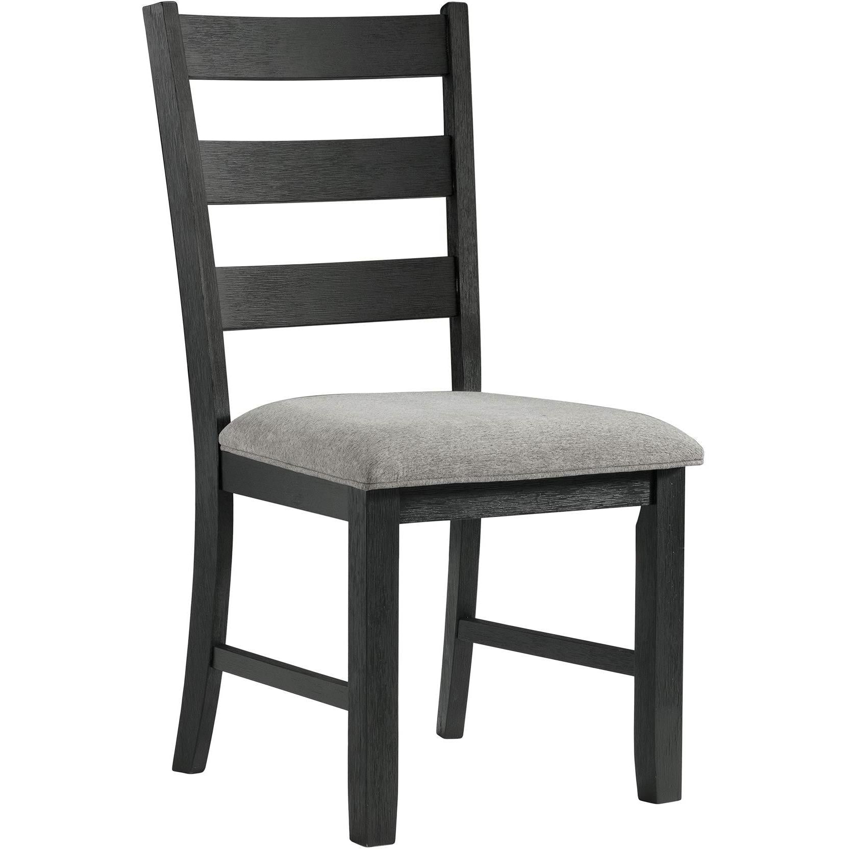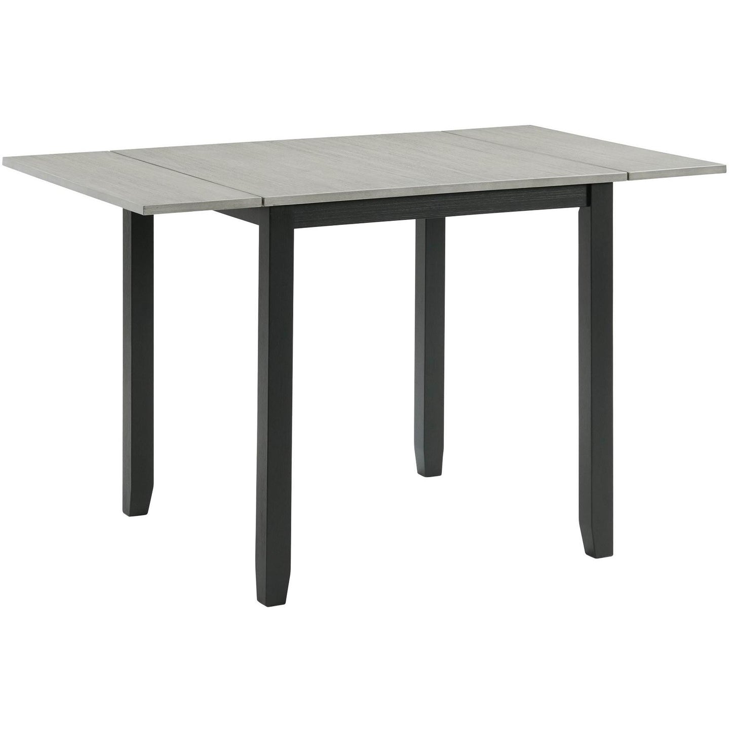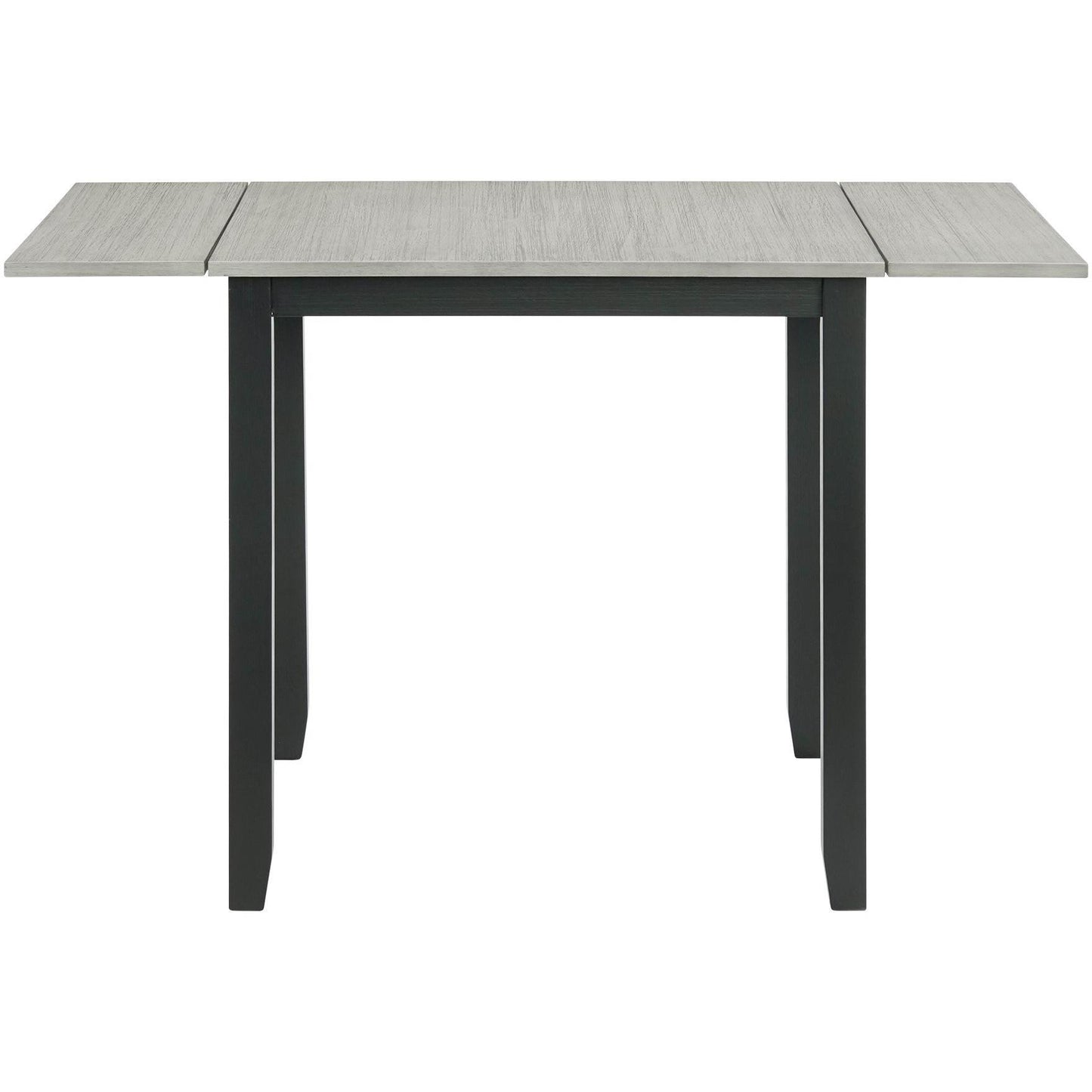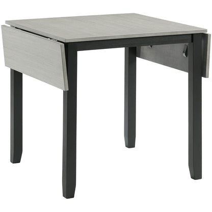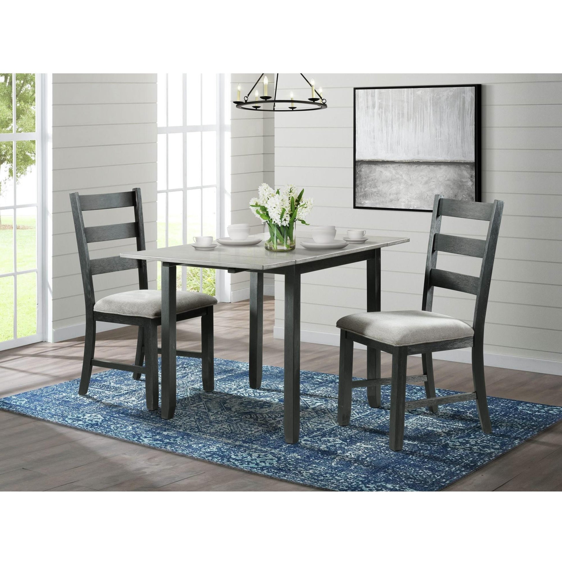 This Martin 3-piece dinette features a drop-leaf tabletop in a grey finish and a black base. The chairs come with a ladder back design and an upholstered seat. This set includes a dining table and 2 side chairs.