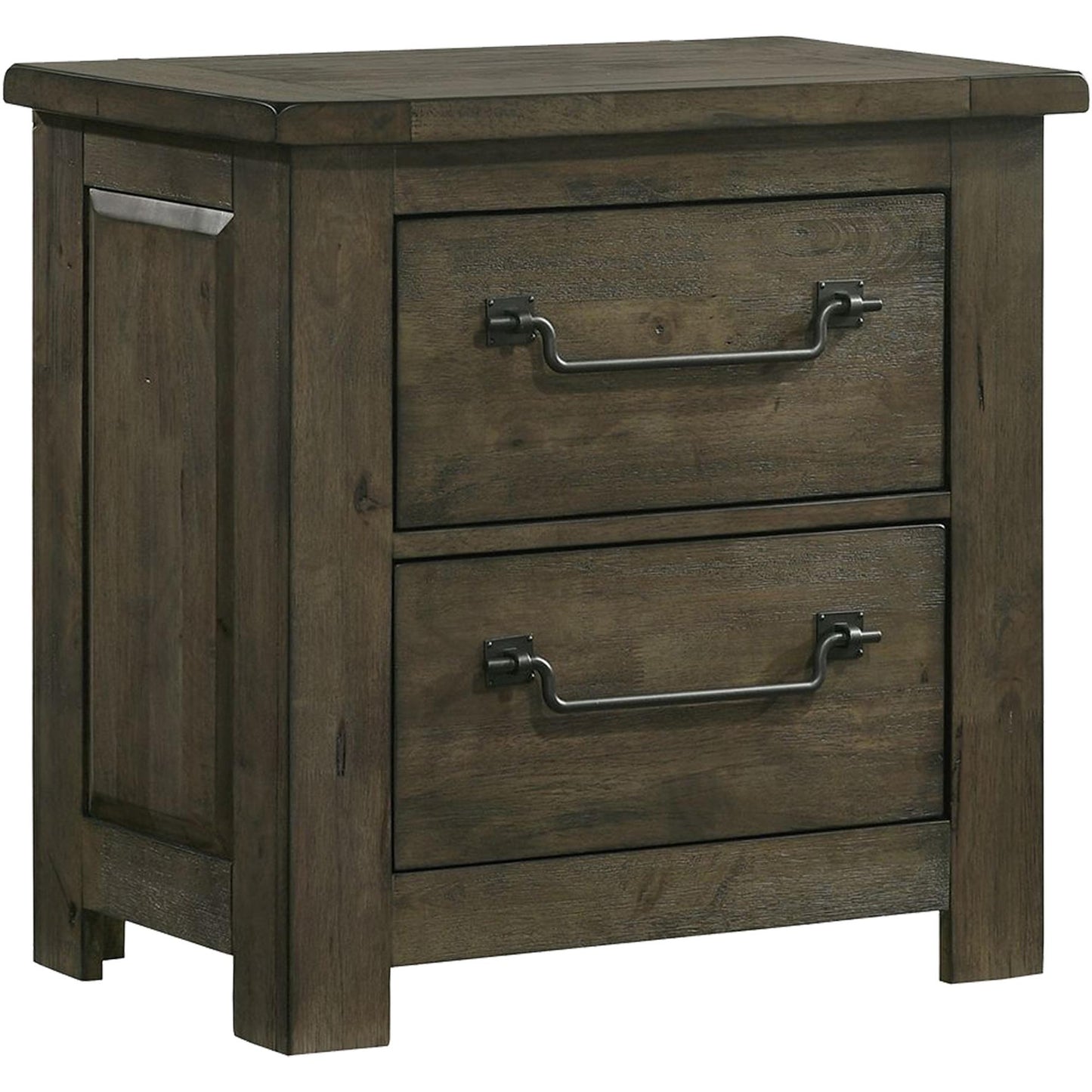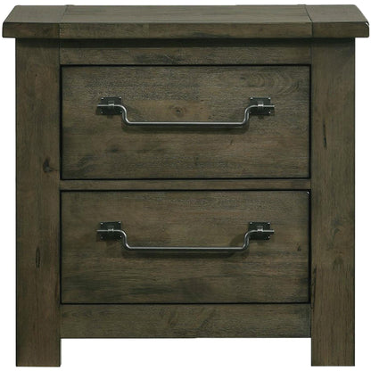 The Maverick 2-Drawer Nightstand in Grey delivers rustic and cozy style to your sleeping space. Features distressing and wood grain detailing throughout for that warm feel. Constructed of sturdy solid and manufactured woods for years of use. Includes a built-in USB outlet for charging your devices. Perfect neutral finish for adding to your existing bedroom aesthetic. Complete the look by adding the Maverick Panel Bed to your bedroom.