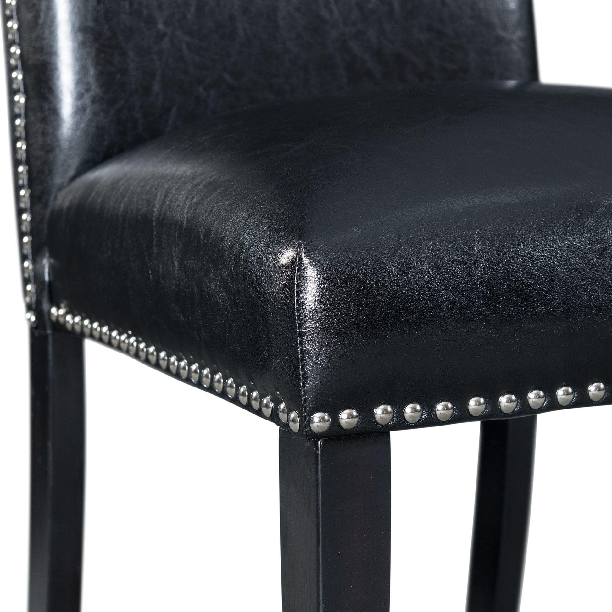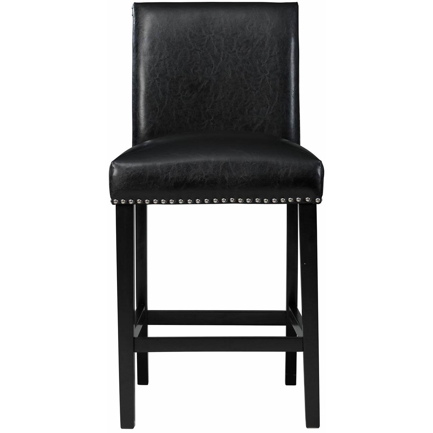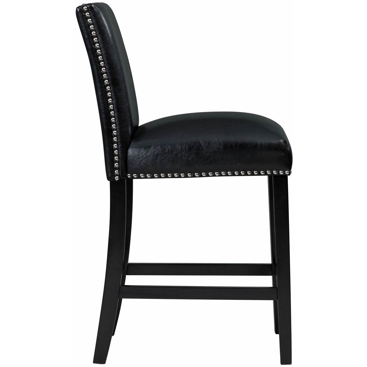 The Meridian Faux Leather Counter Height Side Chair Set will bring stylish character to your dining room. This set comes with two fully upholstered side chairs, for counter height dining. Black, faux leather beautifully wraps both chairs and is simple to clean. Polished, chrome nail head trim lines the outer edges of each chair for a chic flair. Upgrade your dining set by switching out your old chairs to the stylish Meridian Faux Leather Counter Height Side Chairs.