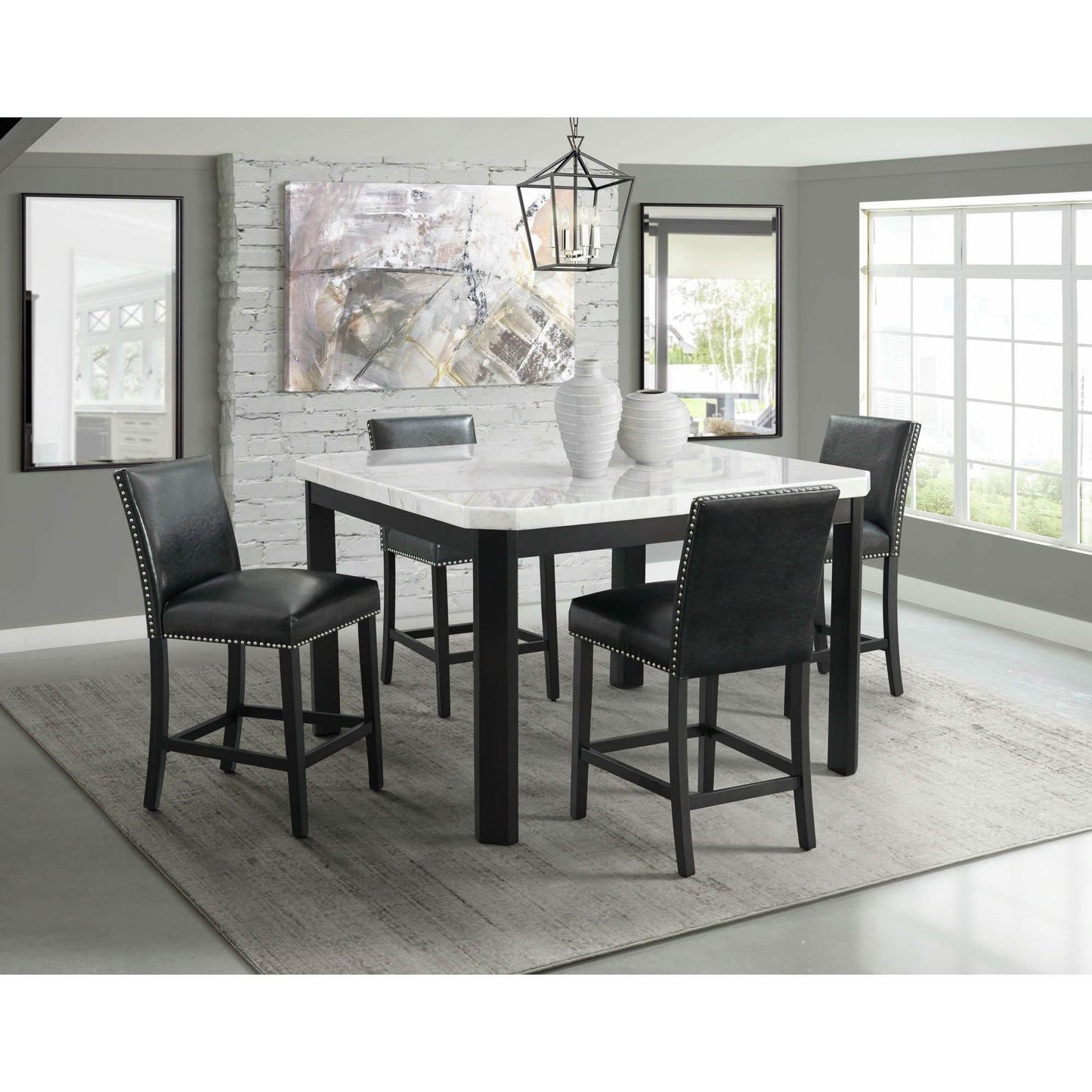 Elements International Meridian Faux Leather Counter Height Side Chair Set in Black