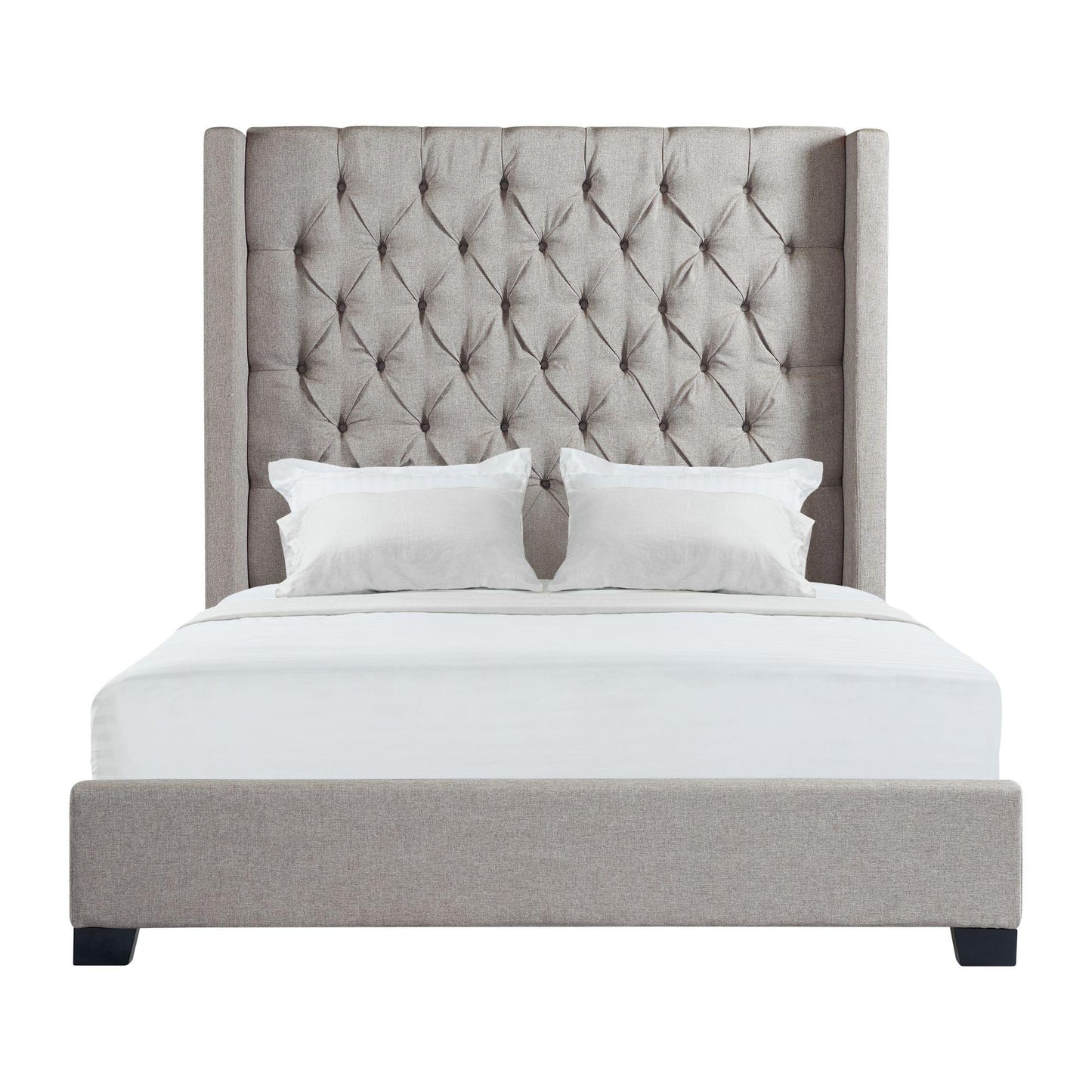 The Morrow Upholstered Bed will be the focal point in any bedroom. The diamond tufted headboard is perfectly upholstered in a durable fabric. The grand size of the headboard adds a little bit of drama to your space while still bringing warmth and a sense of coziness with the fabric wrapped framing. Add this to your bedroom for an effortless look of elegance.