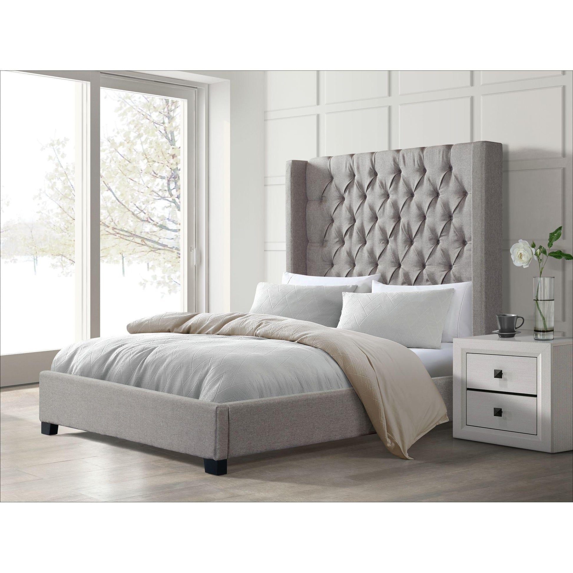 Elements International Morrow UMW092QB Queen Upholstered Bed - Gray
