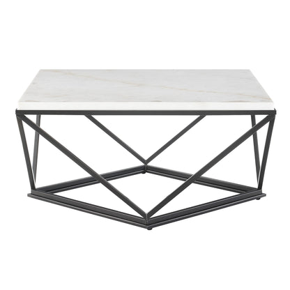 This Riko coffee table is the perfect addition to your home. It features a beautiful white marble tabletop that pairs perfectly with the powder-coated black base. It will be a staple piece in your home and a focal point in any room.