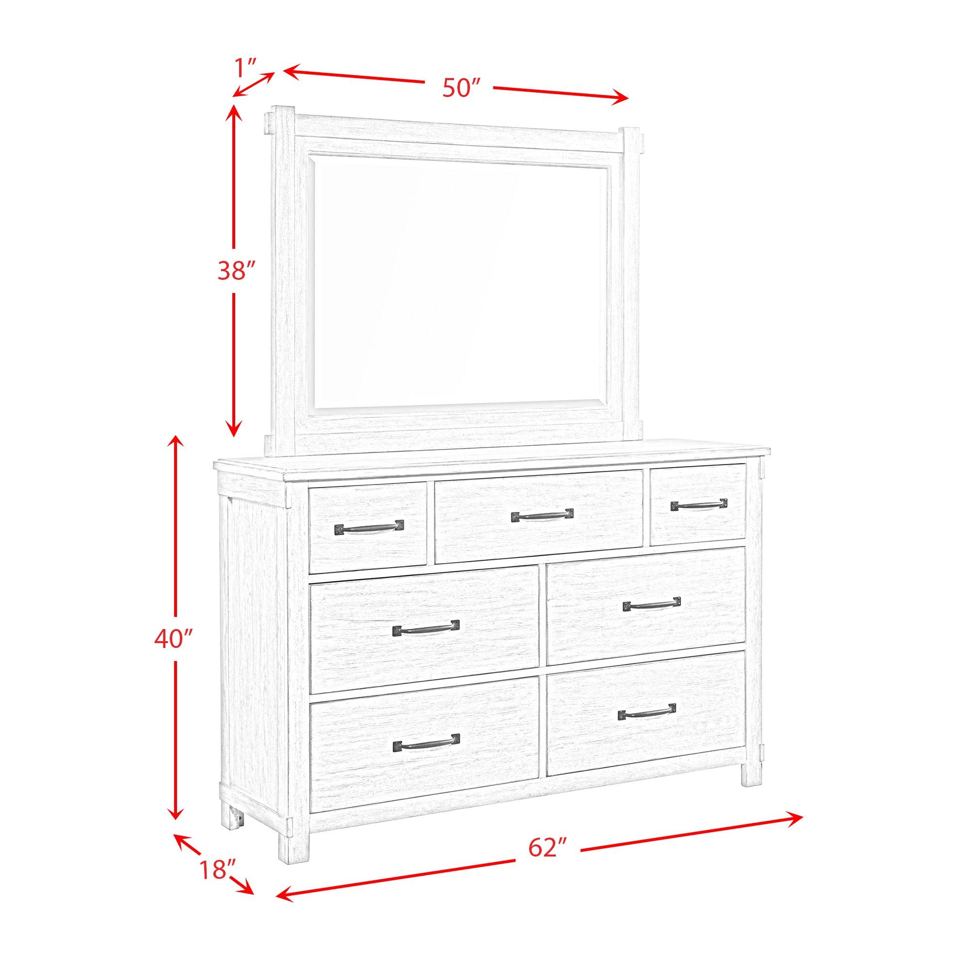 • Dresser: 18" x 62" x 40"