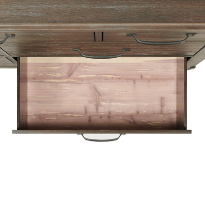 The Scott 7-Drawer Dresser with Mirror is the perfect addition to your home! This dresser offers plenty of storage space for your clothes. The top drawer has black, felt lining to better protect your more delicate belongings. Dark metal drawer pulls complement the walnut, distressed finish beautifully. This dresser will easily match any existing decor you might have. Add this dresser to your home today for a transitional farmhouse look that will last year after year!