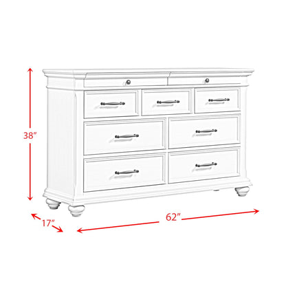 The Slater Dresser is going to look amazing in your bedroom! This horizontal dresser offers nine spacious drawers for storage; while the top drawers feature black, felt lining for you to easily store away your more delicate belongings. The dark metal drawer hardware beautifully pairs with the black finish, making it a gorgeous combo that will never go out of style. Bevel edges and bun feet complete the look of this transitional-style dresser. Add this piece to your home today for a look that you'll enjoy day after day!