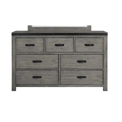 This Wade dresser features a contemporary design that is complemented by the fusion of metal and wood, clean lines and a beautiful grey finish. It comes with brushed metal straps that contrast against warmth of the grey wood finish. The craftsmanship and design can make this a fantastic addition to a home.