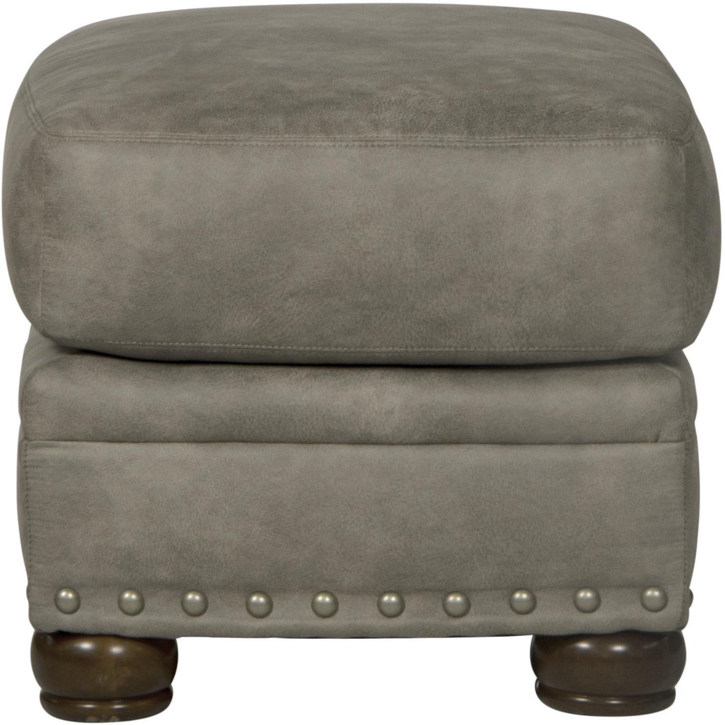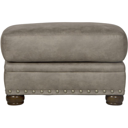 This Briarcliff ottoman features a farmhouse casual style and decorative pewter nailhead trim.