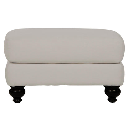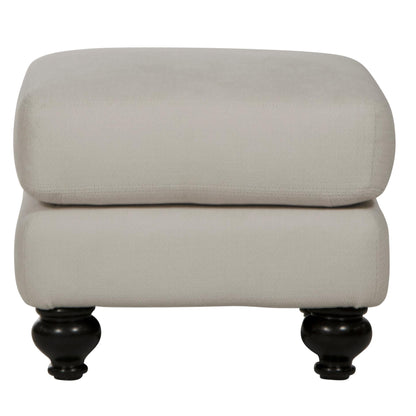 This lovely Cumberland ottoman features ecru color fabric and wooden turned feet.