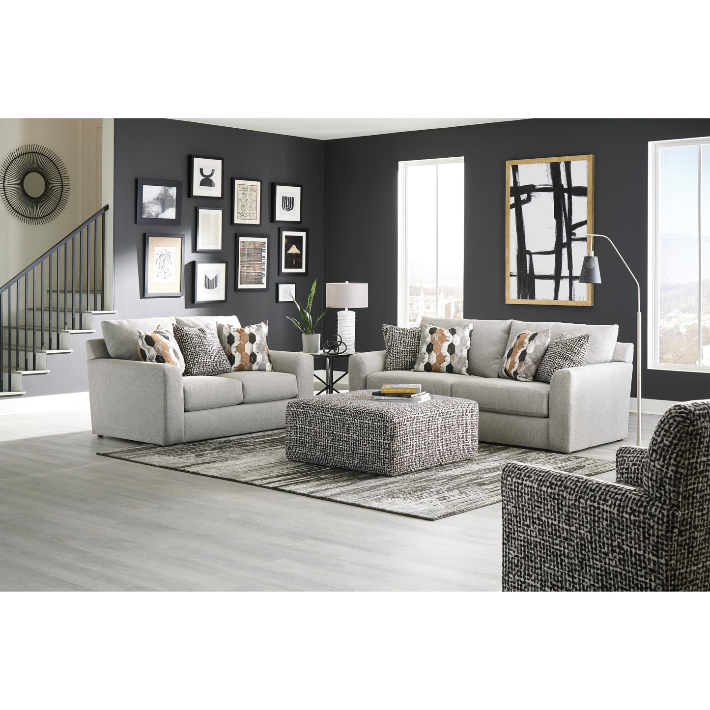This Hooten swivel chair features sock arms and a hematite fabric. It can be a great addition to your living room.