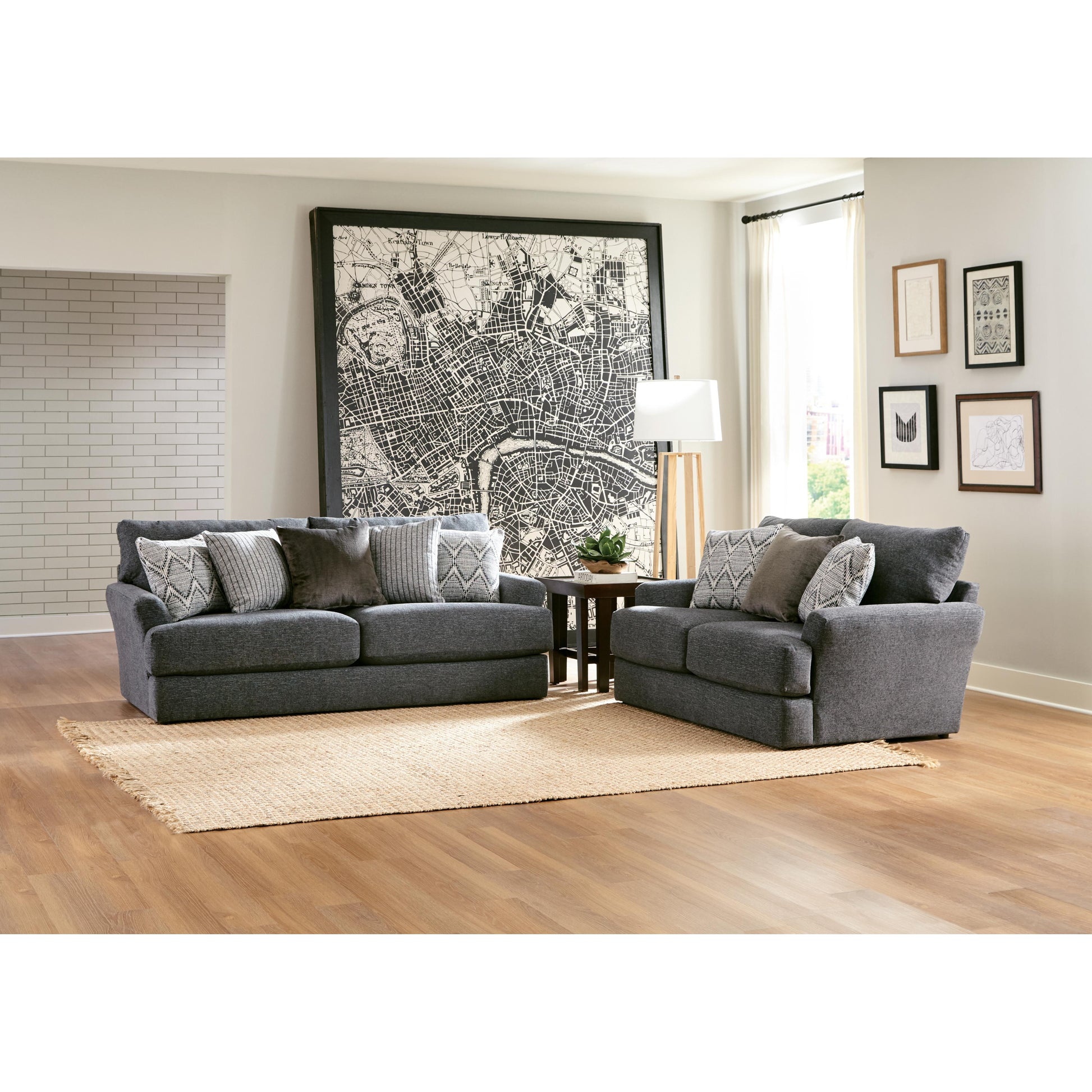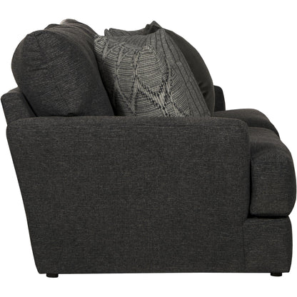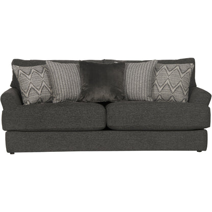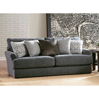This Howell sofa features a casual contemporary design, accent pillows, and is upholstered in soft chenille fabric.