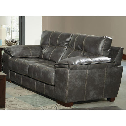 The Hudson Loveseat from Jackson Furniture has a stylish contemporary design and comfortable seating which makes it the perfect addition to your home. It features a tufted seat and back in thick faux leather fabric. It is adorned with contrast welt stitching on arms and contrast luggage stitching.