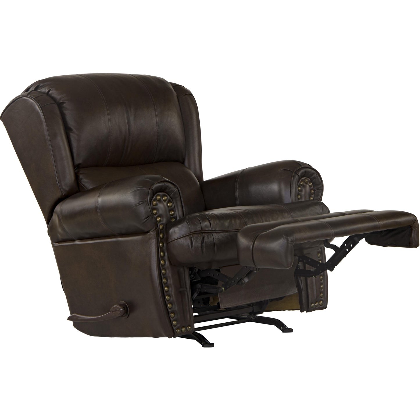 This Roberto rocker recliner features a decorative nailhead trim and cocoa upholstery. It can be a great addition to your living room.