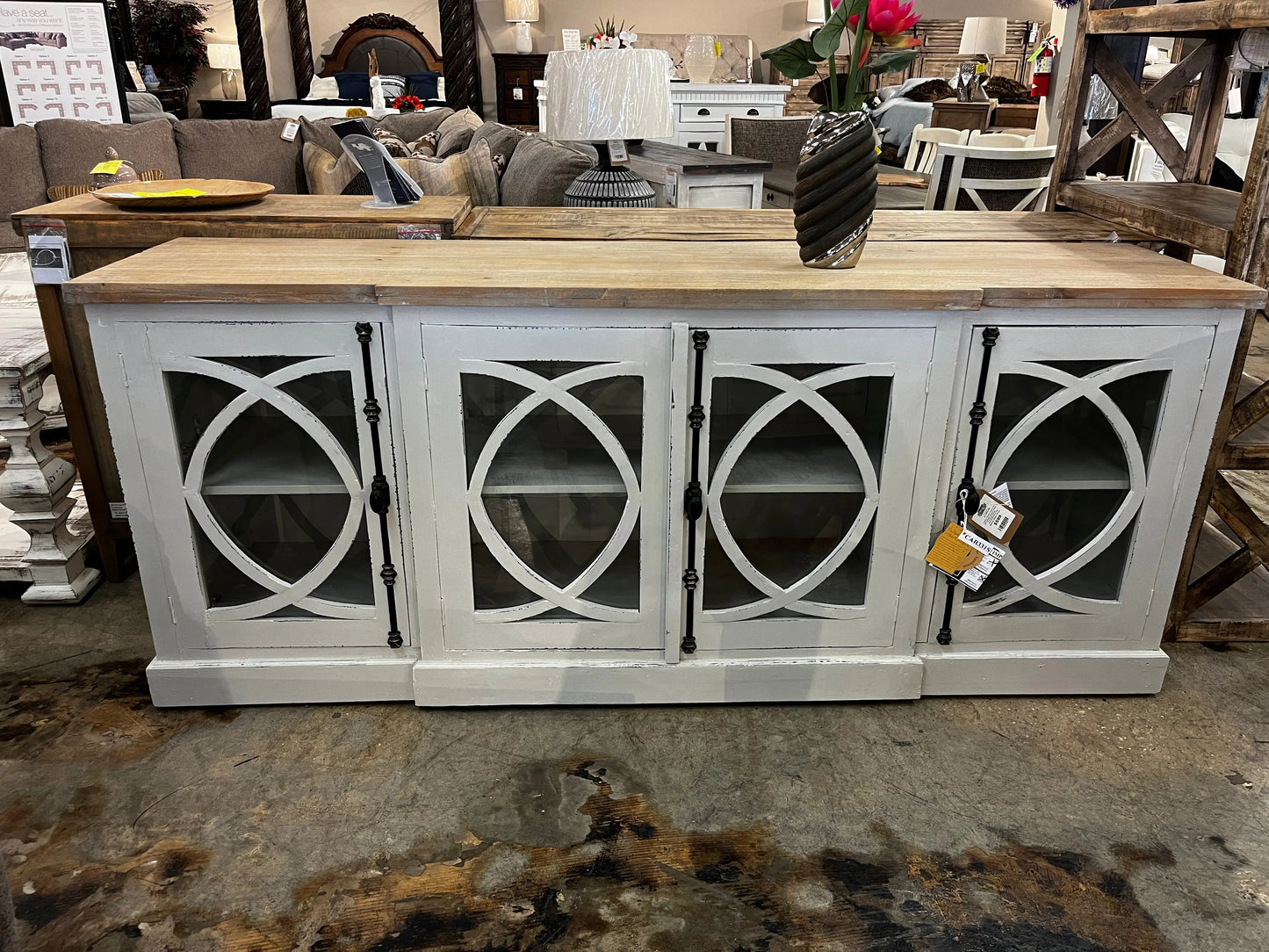 Glazed 4 Door Credenza Pearly Grey/Driftwood Top