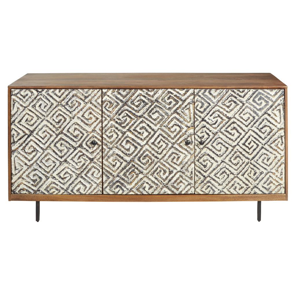 If you’re looking for a cool, clean-lined accent piece loaded with character, then you’ll surely want to carve out some space for this accent cabinet. Fabulous flush-mount doors wow with their carved Greek key design for added dimension and tonal contrast. Three interior shelves accommodate your storage needs.