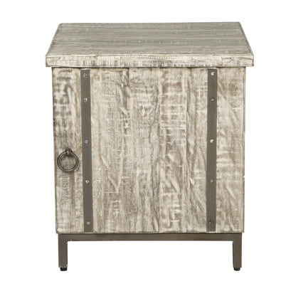 Delighting fans of rustic-chic style, this accent cabinet tells a story with its unique markings and tonal variation. The antiqued brown hardware against reclaimed wood has a charming flair, while the shelf inside provides simply stylish storage. Radiating an aura of welcoming warmth, this piece fills your home with effortless elegance.
