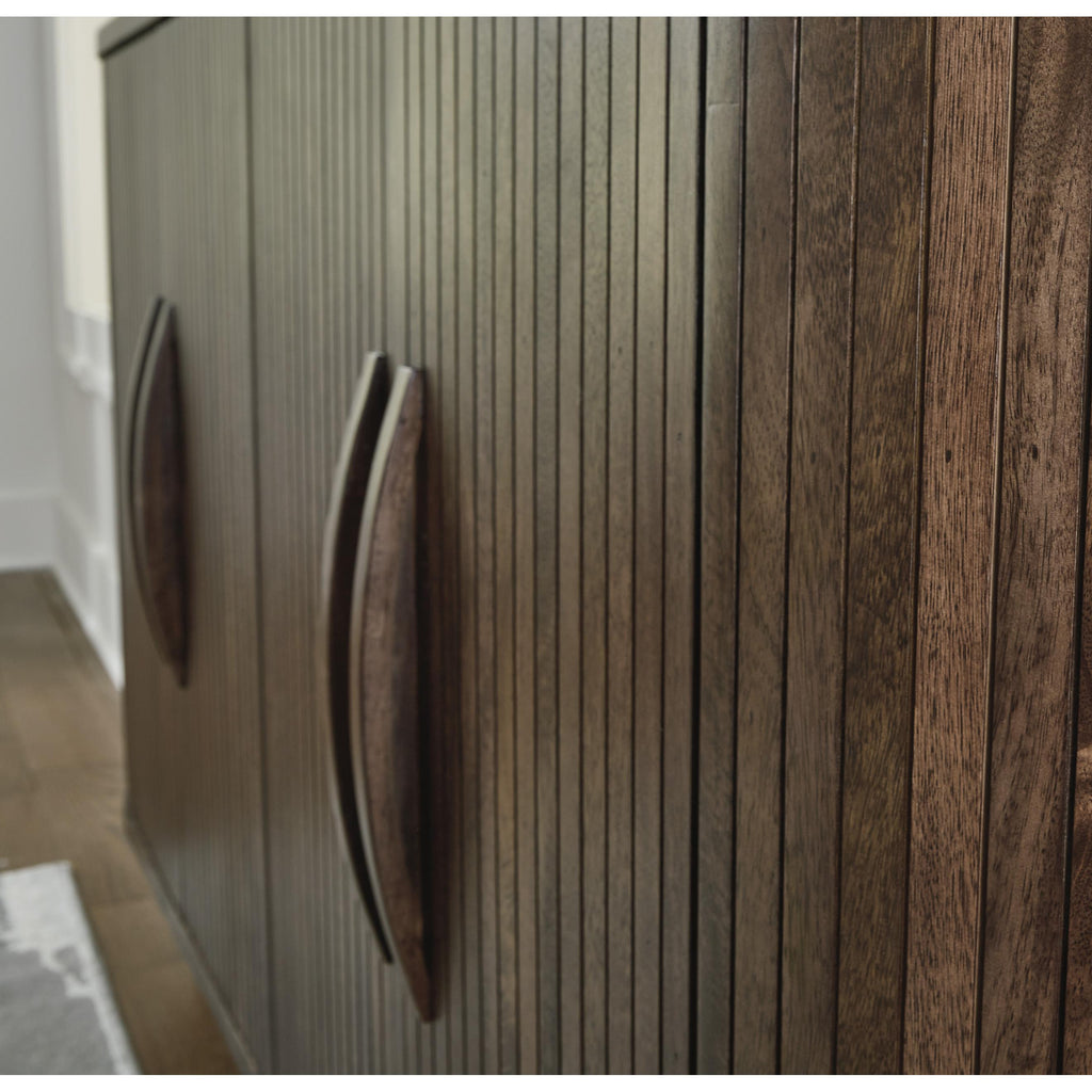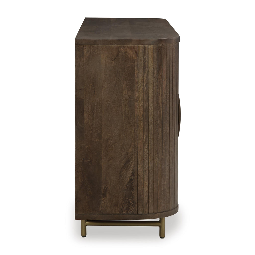 Function and style merge perfectly with this accent cabinet. Exquisitely crafted with mango wood, it makes a great case for refined contemporary design. Adding to its allure, the fluted door fronts and gracefully curved side detail keep the look cool with a mid-century vibe. The doors open to reveal interior shelves, ideal for hiding clutter or whatever you choose in fine fashion.