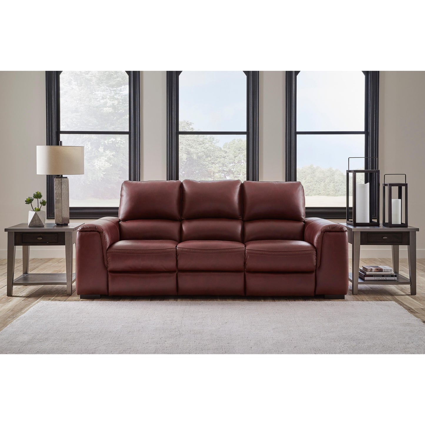 Impressive in scale while keeping an air of refinement, this Alessandro 3-piece power reclining living room set offers USB charging and soft, supple leather match upholstery in garnet. Sink into the seating area and cater to your comfort with one-touch power reclining and an adjustable headrest. This set includes a power reclining sofa, a power reclining loveseat, and a power recliner.