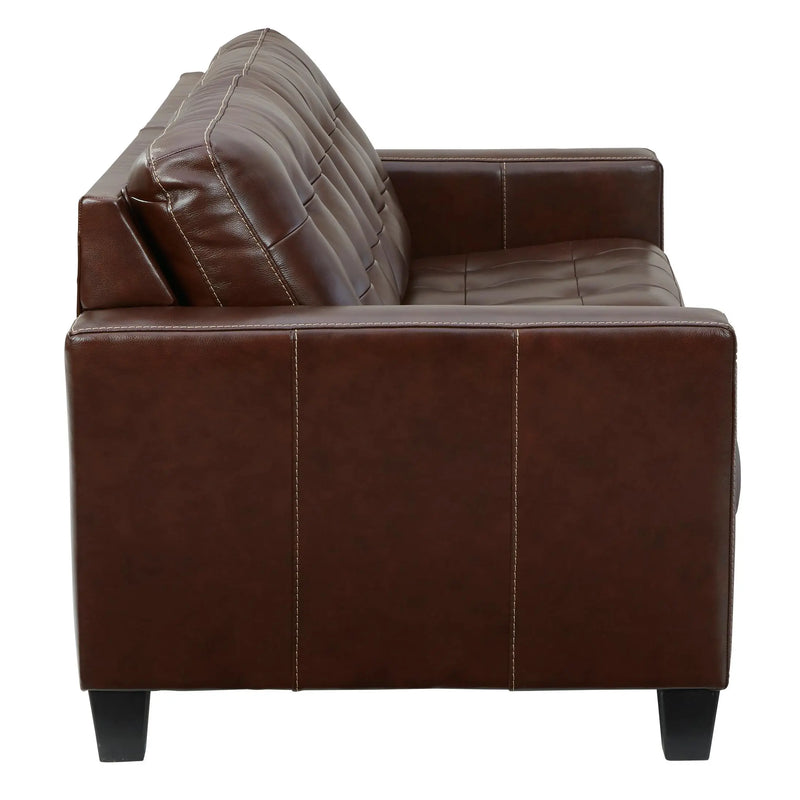 Tailor your space with the tidy structure of this sofa sleeper. Decorative stitching and button tufting on the box cushion make for a very neat appearance. With leather match upholstery, this piece prioritizes luxury at a price you can afford.