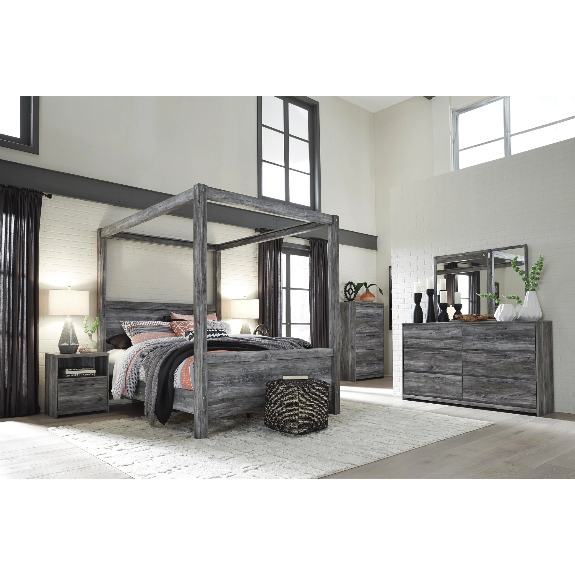 • Smoky gray finish over replicated oak grain with authentic touch