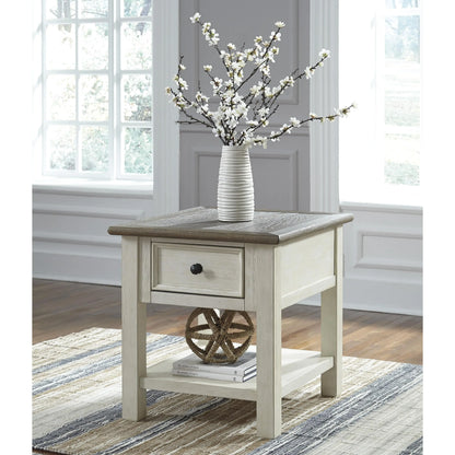 Whether your style is farmhouse fresh, shabby chic or country cottage, you’ll find this end table dressed to impress. Its two-tone, gently distressed finish pairs weathered oak with antique white for that much more quaint character. Charming elements include a plank-and-frame style top, black faceted hardware and a smooth-gliding drawer for remote controls and more.
