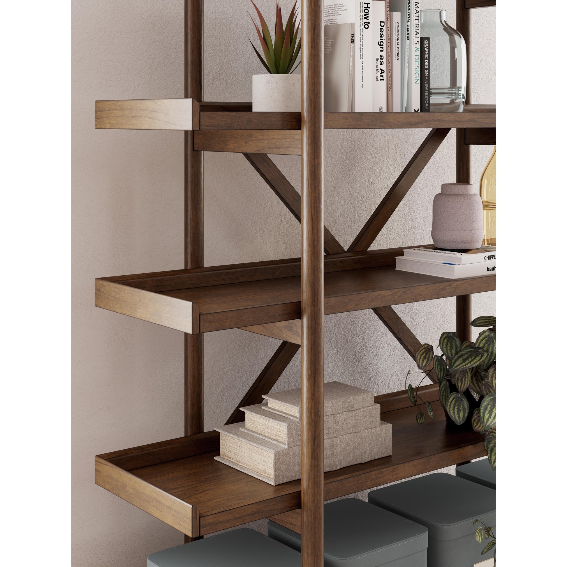 A refreshed take on retro aesthetics. This bookcase adds an air of playful simplicity to your home, capturing the architectural language of mid-century stylings. Subtle in design, it invites the eye with a sleek, open frame. A casual, yet timeless, finish and five gallery shelves stack up for great form and function.