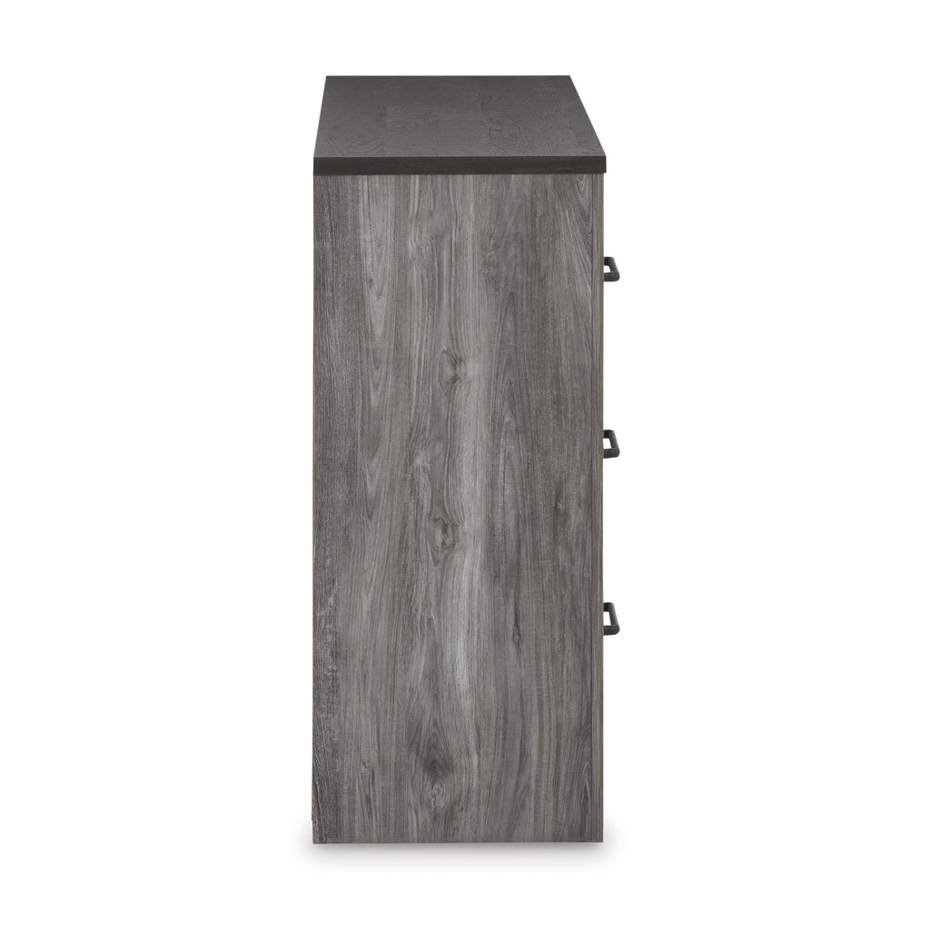 Alluring smoky gray hues create an ambiance that just feels right. This 6-drawer dresser has a charming wood-like appeal enriched by a two-tone, textured look. Light neutral shades contrasted by a dark charcoal finish bring a refined yet relaxed feel to contemporary decor and a sense of serenity to your space.