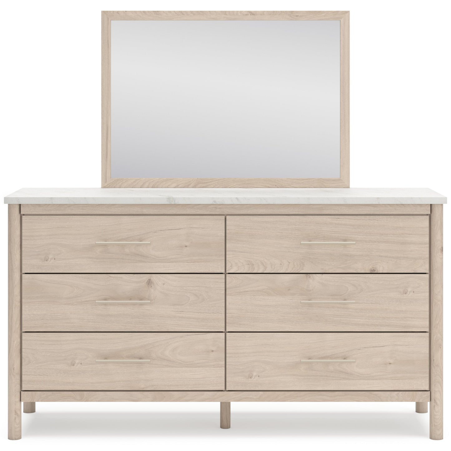Transform your bedroom with this dresser and mirror. With its clean lines and replicated marble top, it exudes a minimal and sophisticated boho style. Tailor your space and create the perfect environment for sweet dreams.