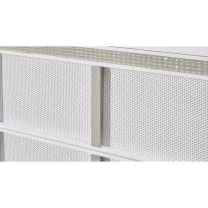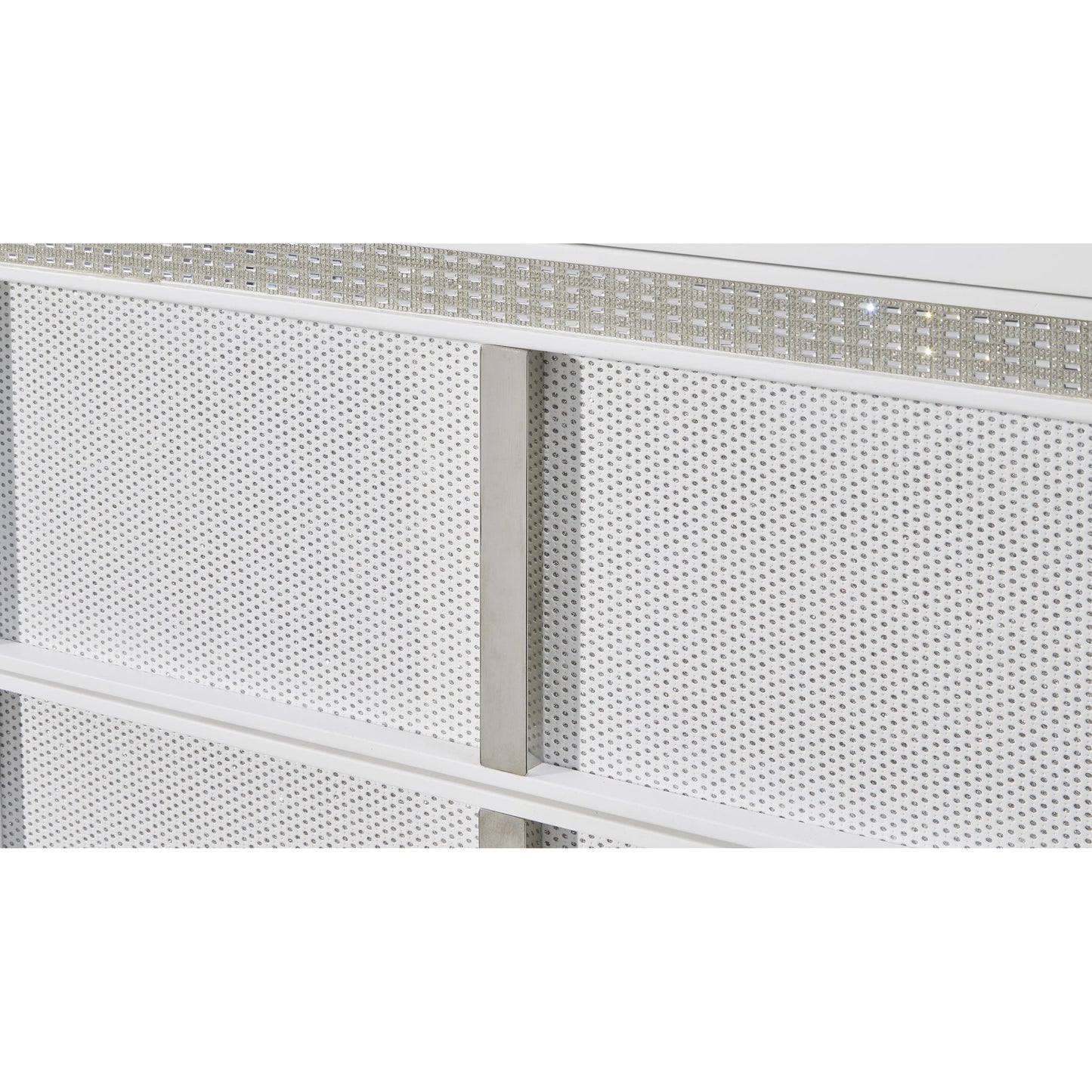 • Drawers with rhinestone frames; textured laminate drawer fronts