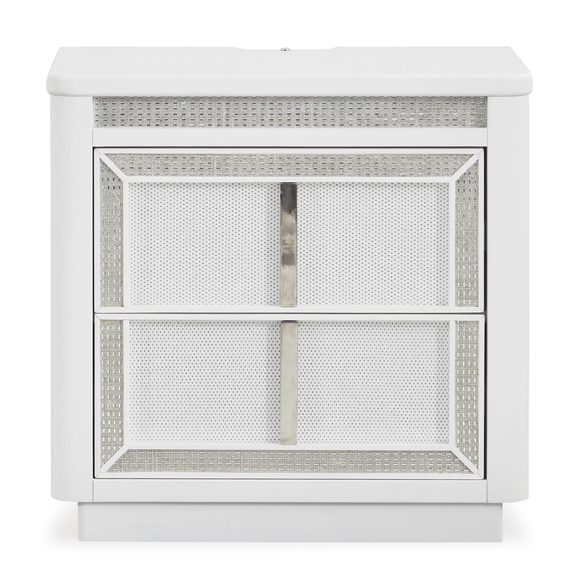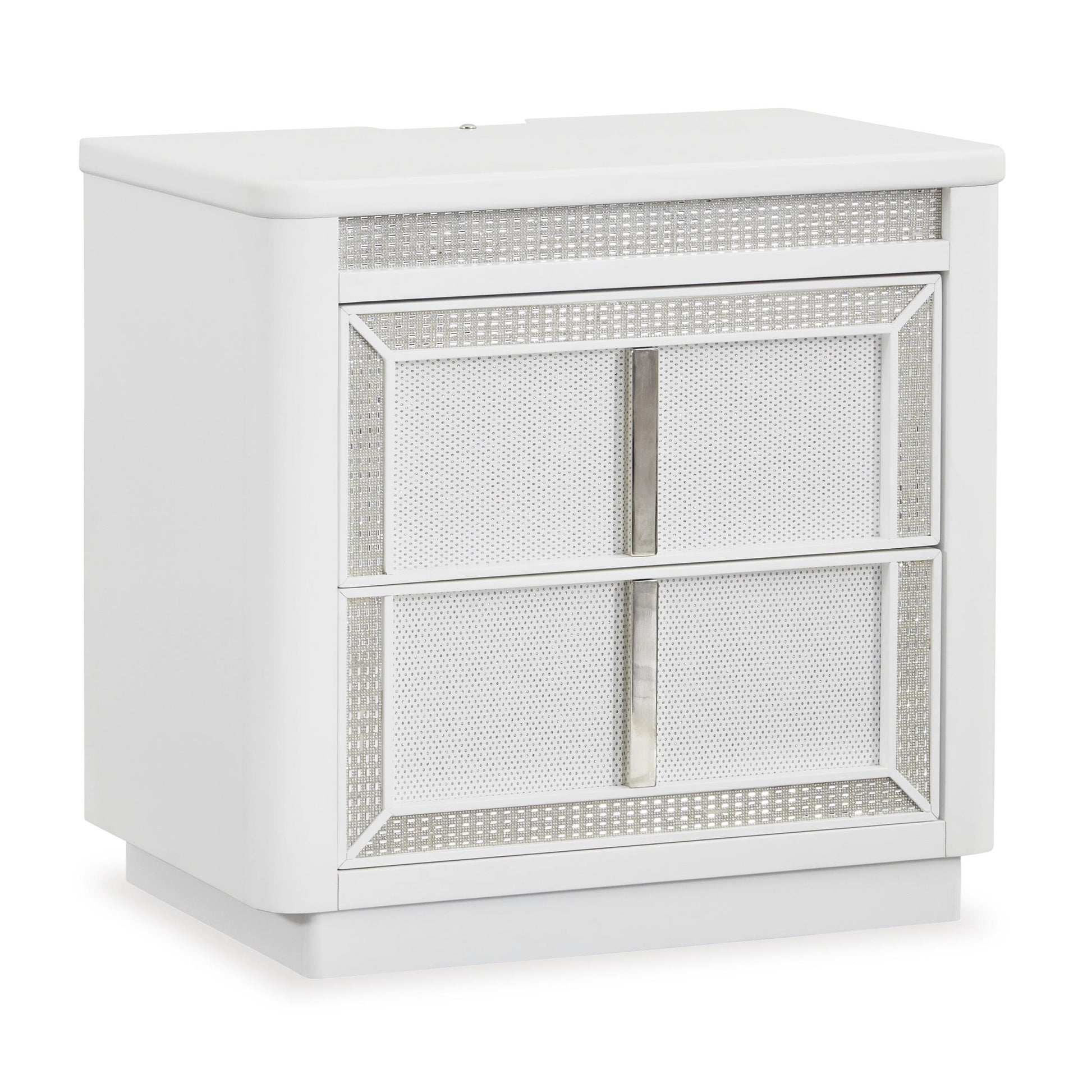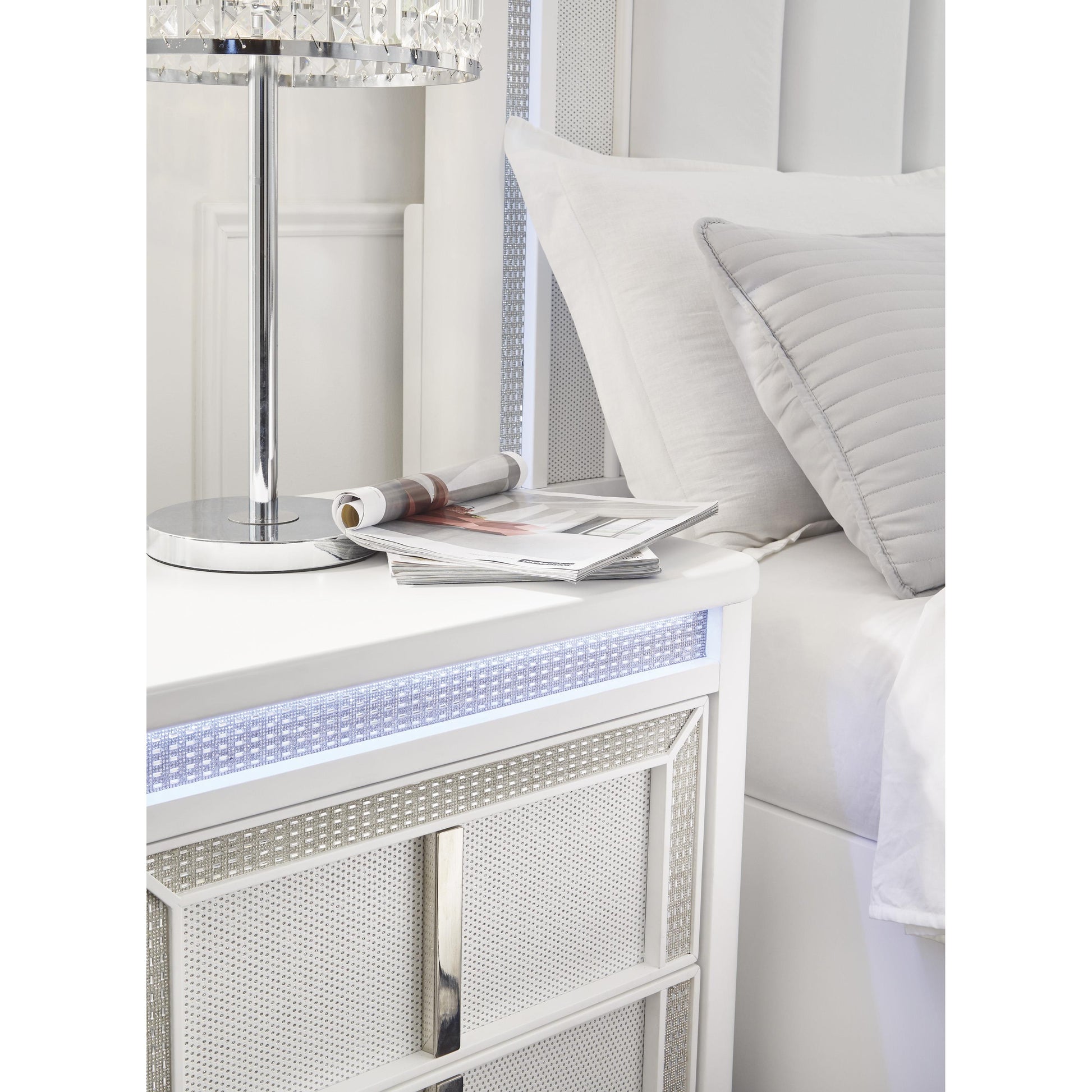 Transform your bedroom with this nightstand. Its modern design and glamorous details create a sophisticated retreat. The built-in LED lighting and rhinestone-framed drawers add style and practical storage, while USB charging keeps you connected. Let your sanctuary shine and never let anyone dull your sparkle.