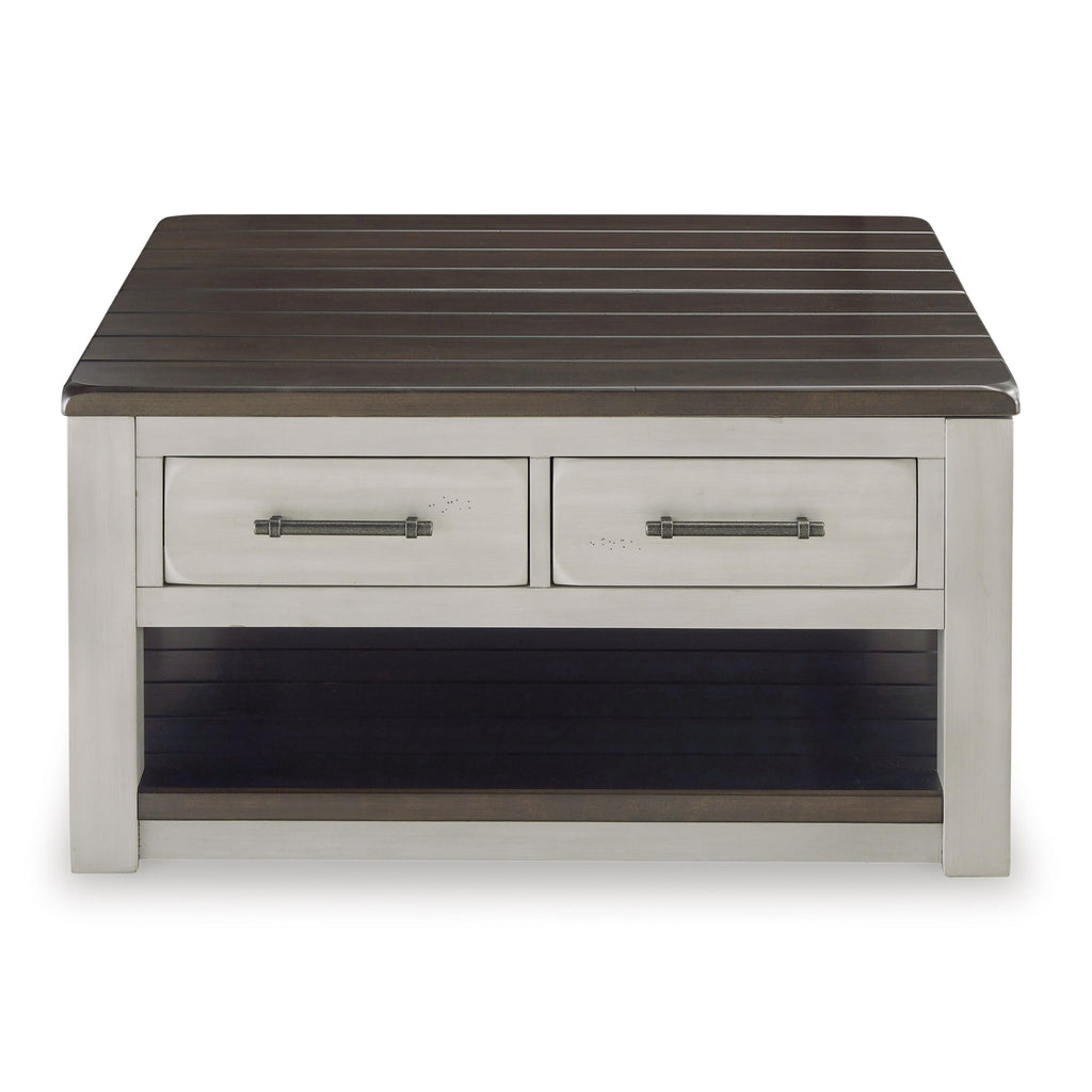 Make a farmhouse-inspired statement with this coffee table. Beautifully crafted to stand the test of time, the planked look and clean two-tone finish lend a relaxing vintage feel. A clever lift-top section and spacious storage drawers double up on form and function.