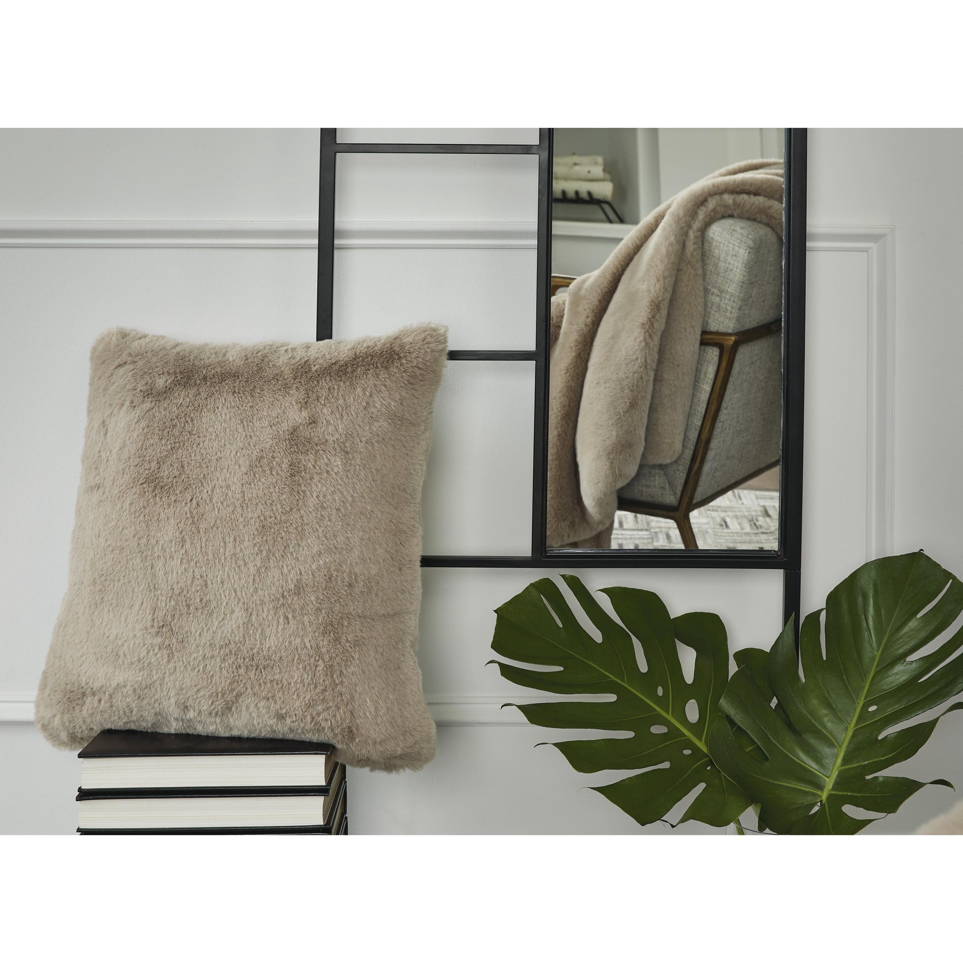 Soft, subtle and sensational. The plush feel of this faux rabbit fur pillow will drive you wild. Its taupe hue pairs with a variety of decor, from casual to contemporary.