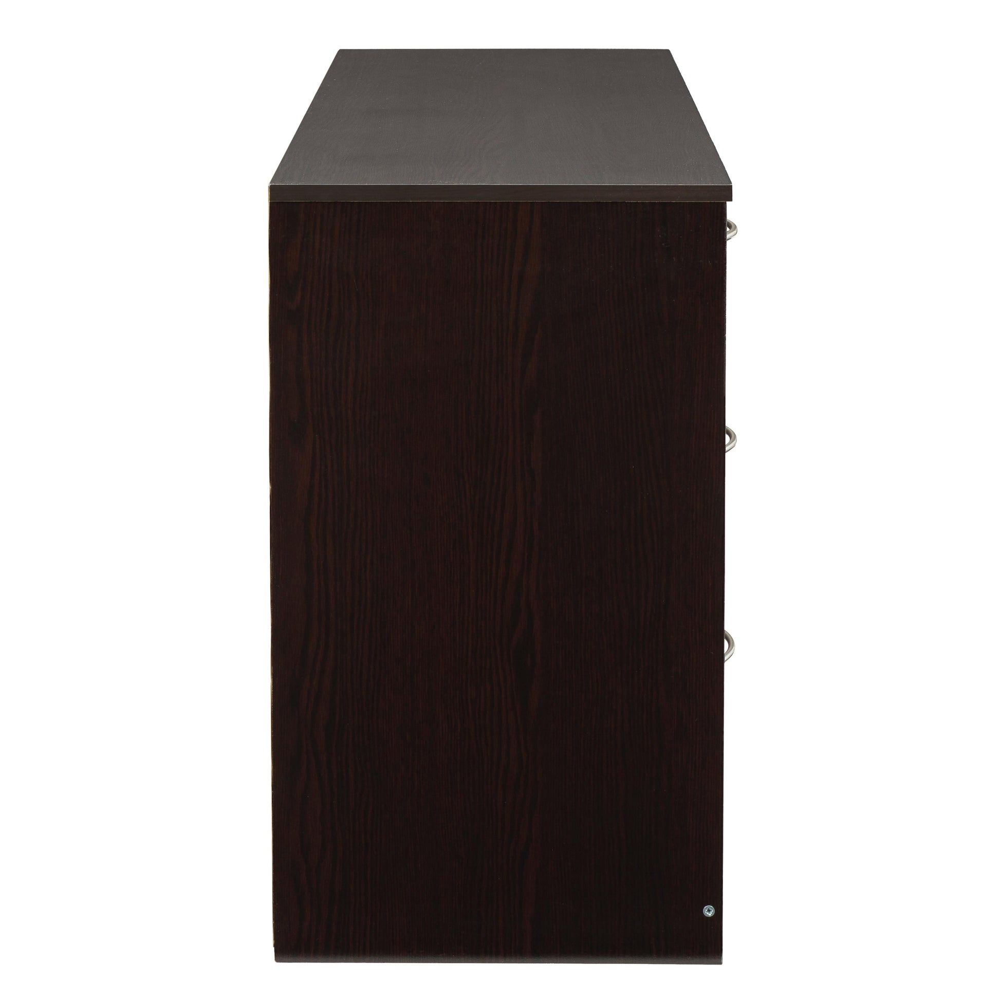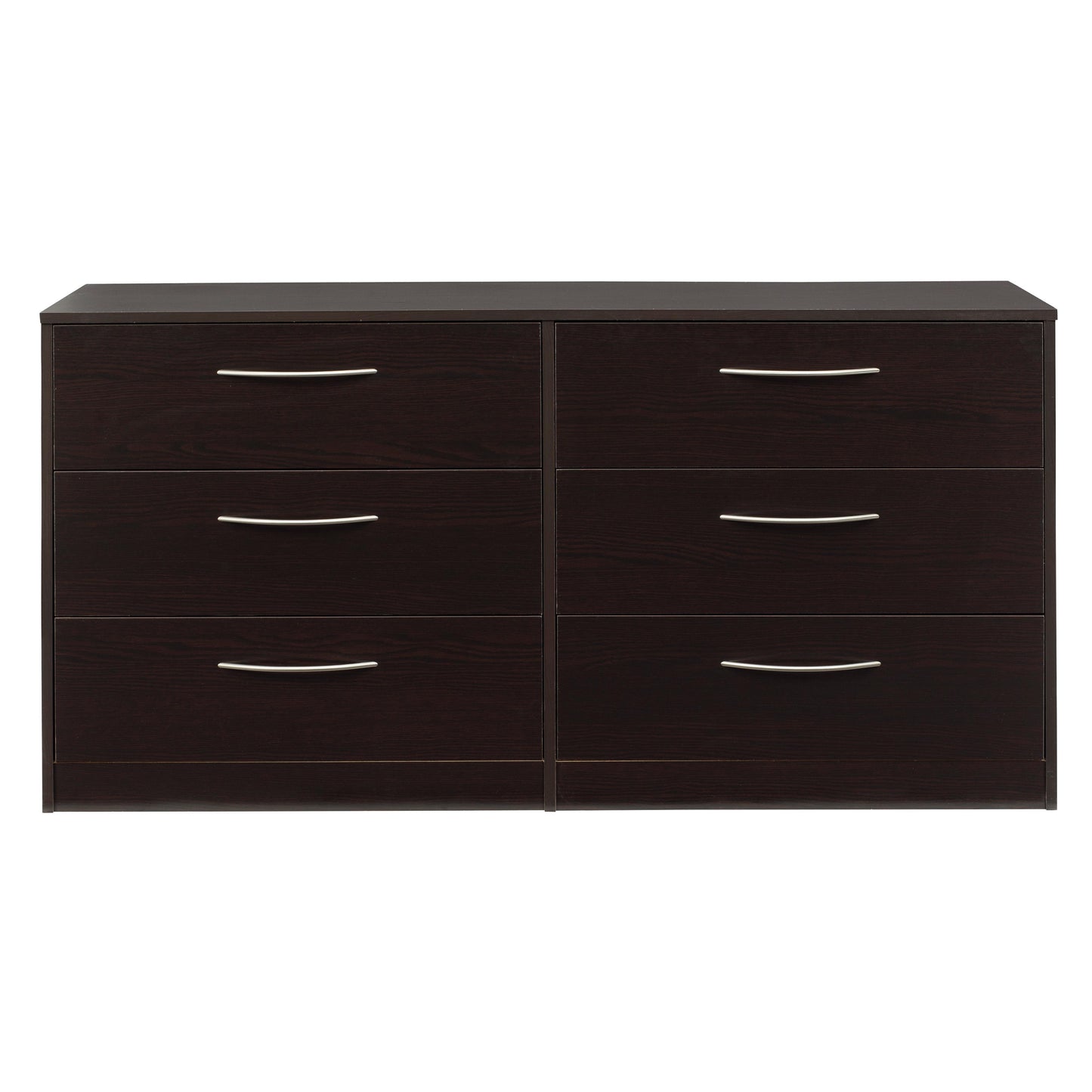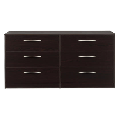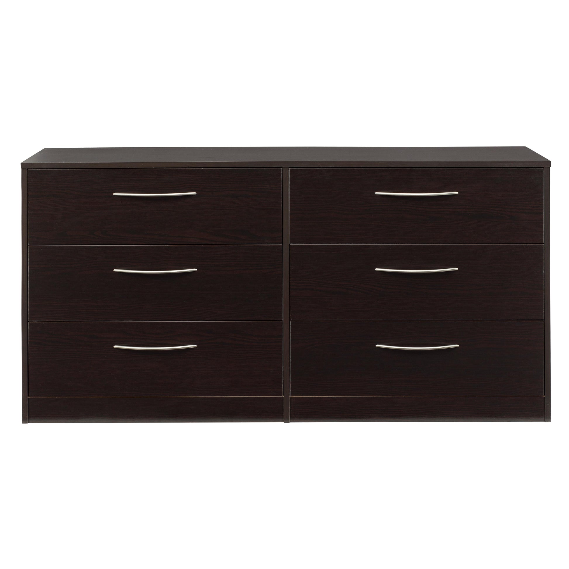 Practical and attractive, this dresser blends seamlessly with modern decor and makes a smart addition to a bedroom. The six full-sized drawers slide easily and can be used to keep your clothes neat and organized. Sleek metal pulls in a brushed nickel-tone finish add to the streamlined aesthetic. Combine with other pieces in the collection to create a room that’s smart and stylish.