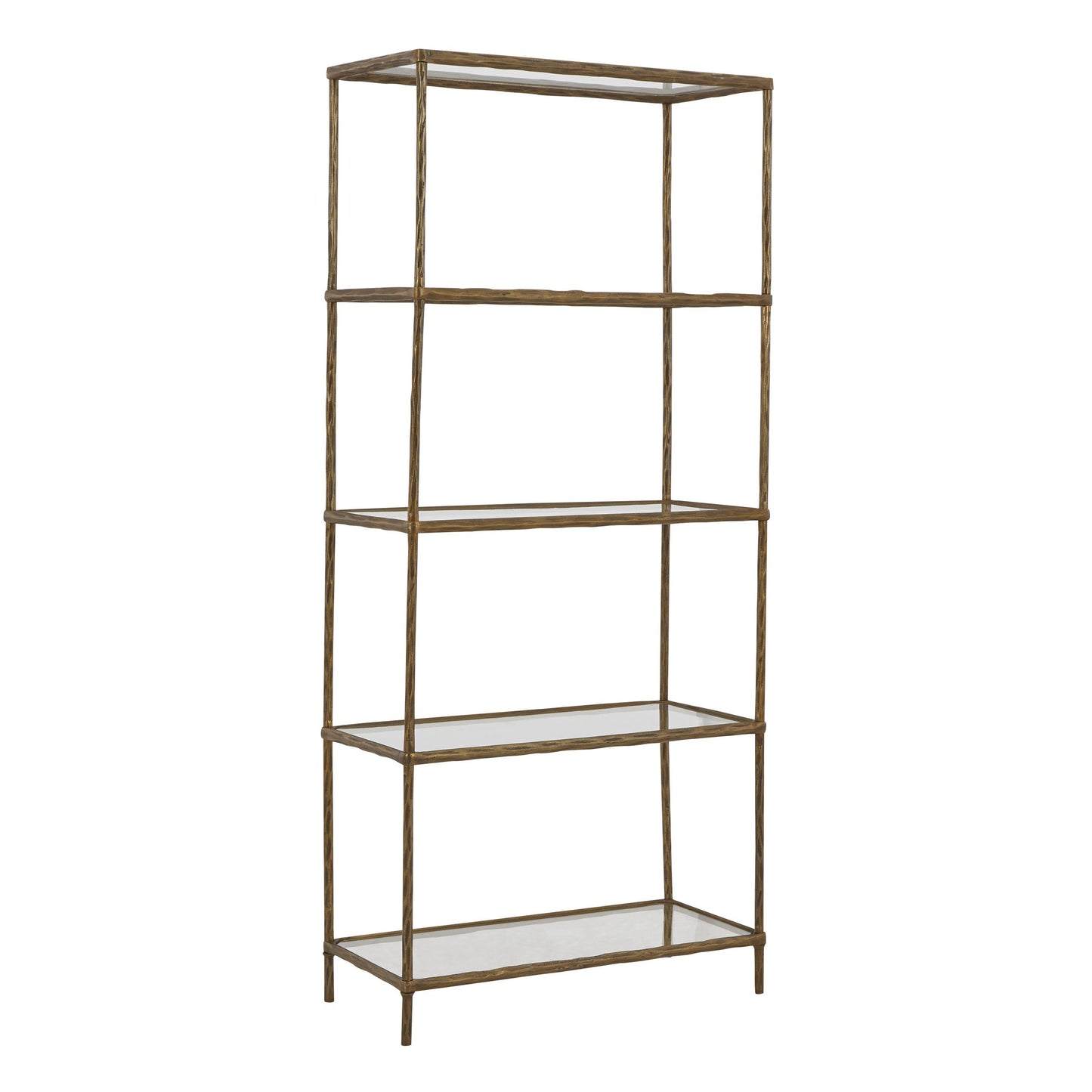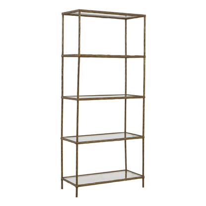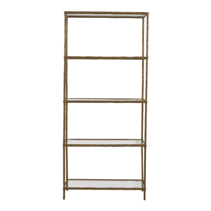 Classic in design with a dash of textural appeal, this bookcase provides endless possibilities for displaying your decor. Five shelves offer the perfect perch for potted plants, books or your favorite framed artwork. The frame's antiqued brass-tone finish has a rustically luxe look that remains versatile, suiting spaces from casual to contemporary.