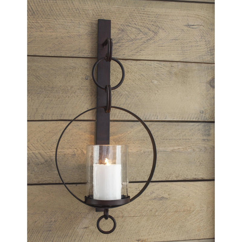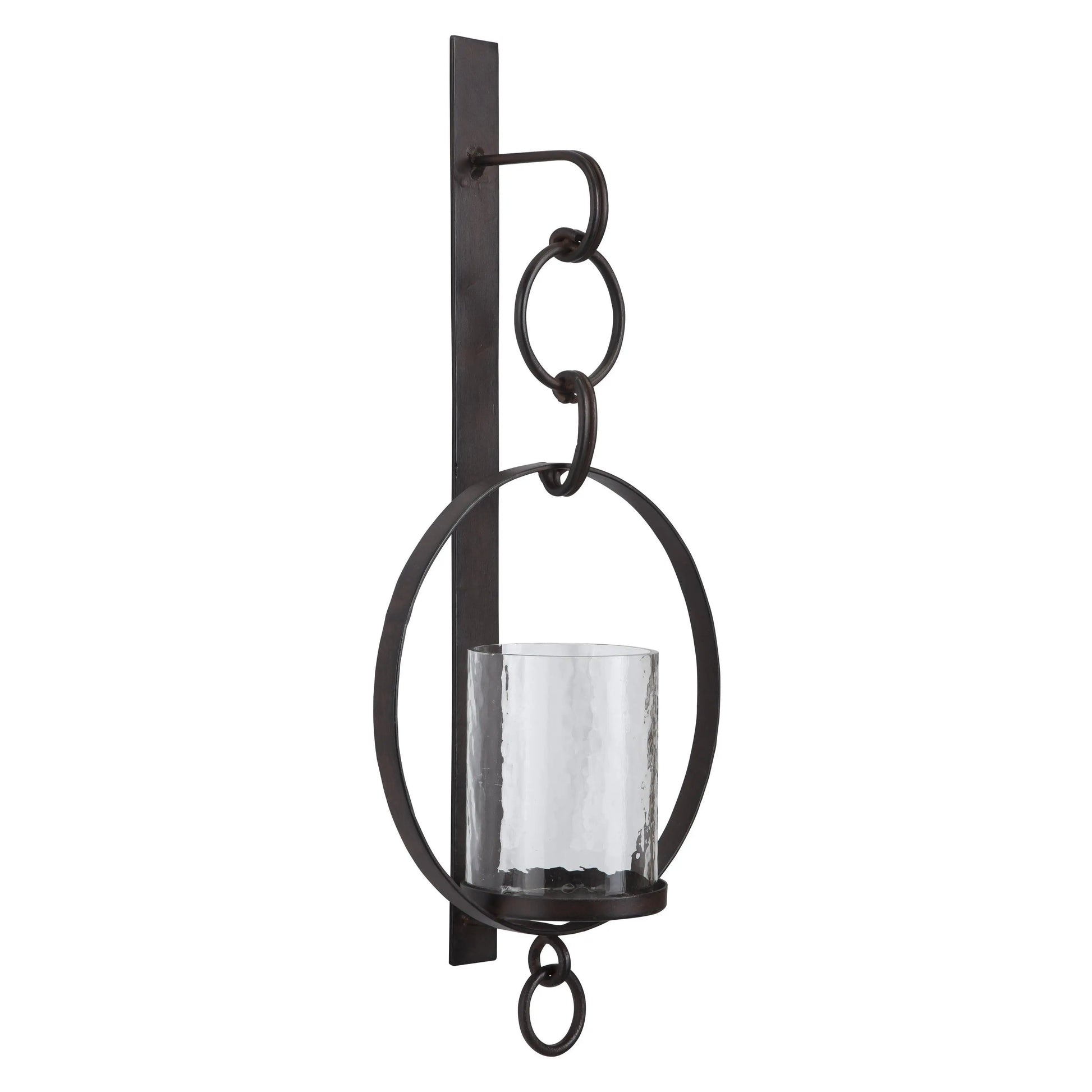 Hang out in style. Bring warmth and flair to an overlooked space with this wall sconce and candle holder. Dark bronze-tone metal and clear glass make a striking combination. Aligned or staggered, they’re even more beautiful when paired.